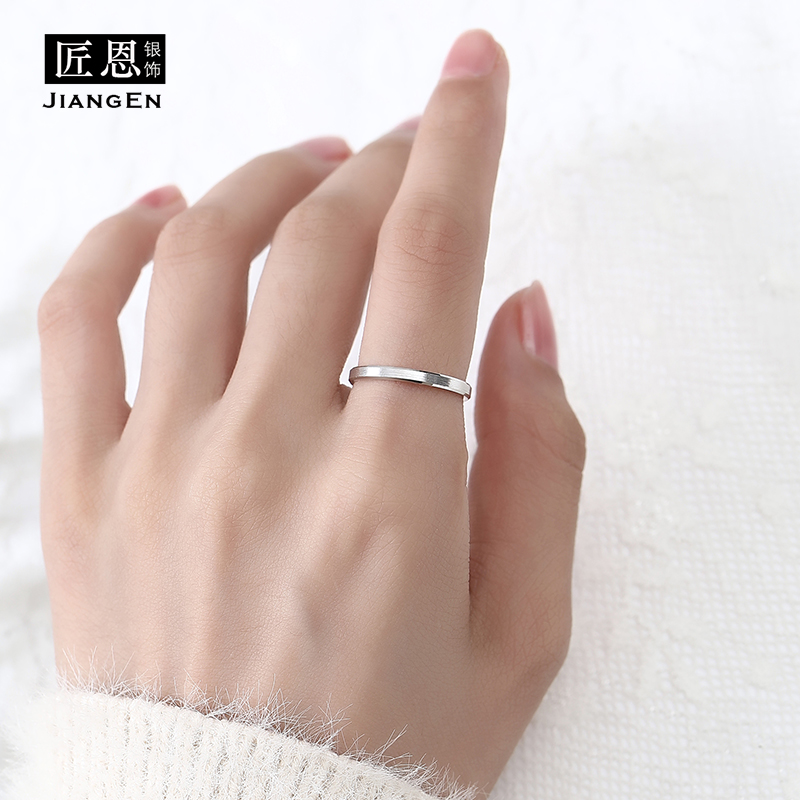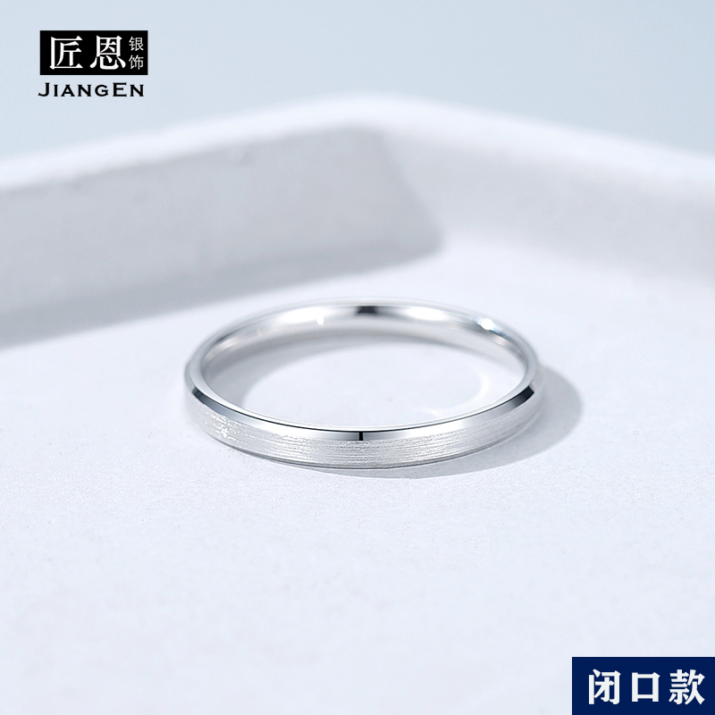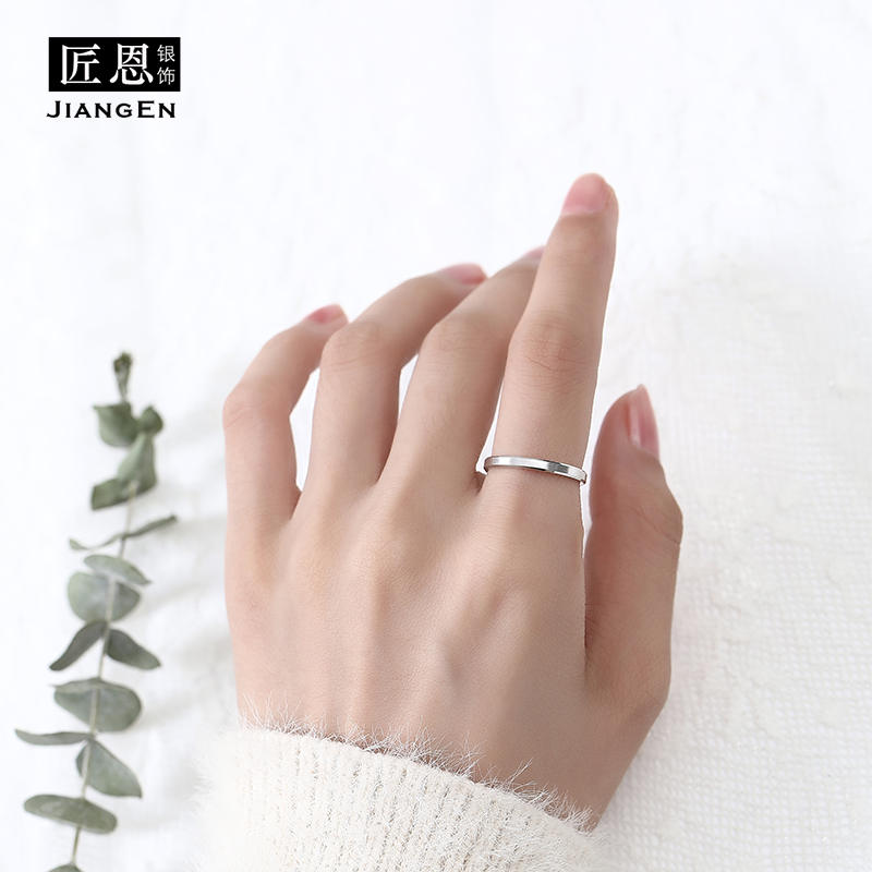 925银戒指女生纯银闭口食指单身指环简约时尚拉丝素圈尾戒女小指