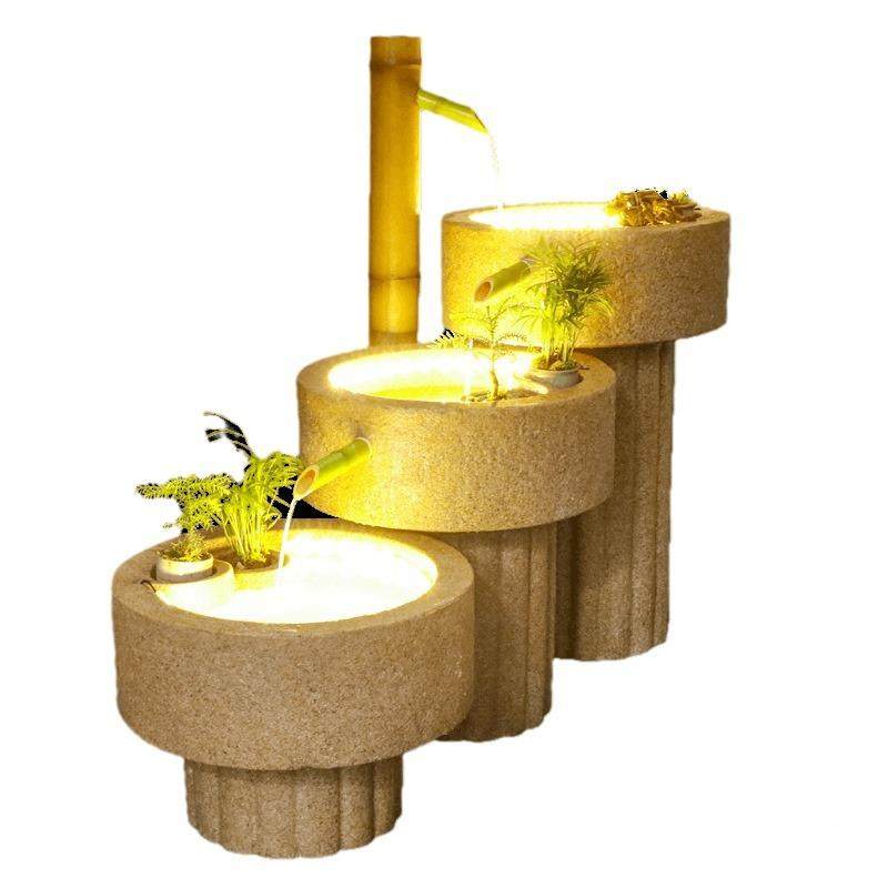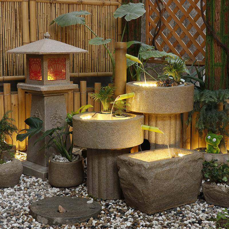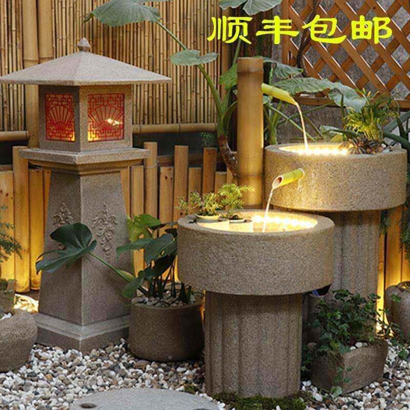 日式竹子流水摆泉客厅装饰件品室内庭院景观假山喷6602水风轮