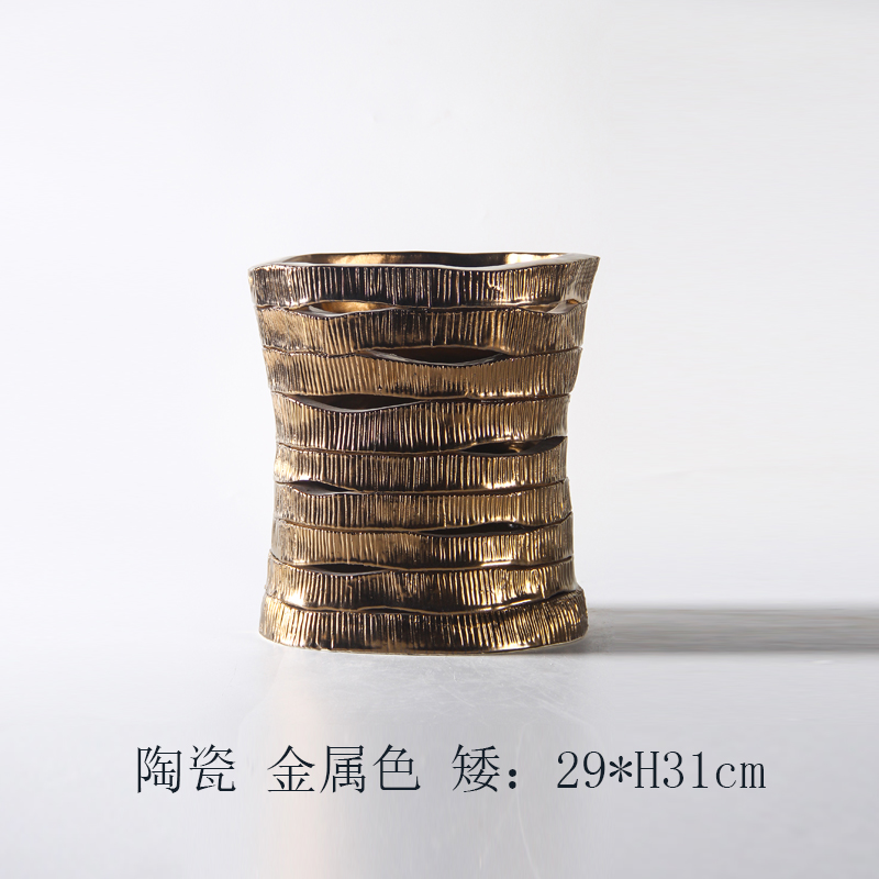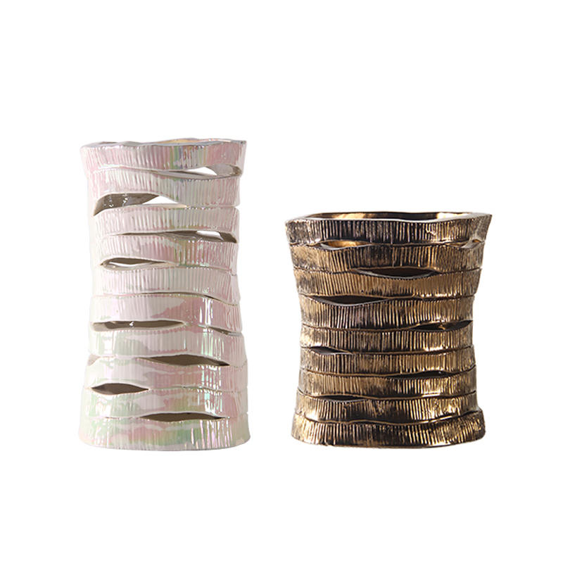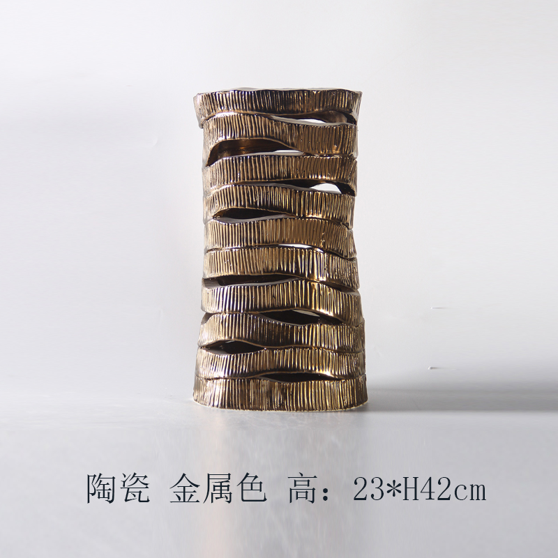 现代条状镂空金属色陶瓷花瓶摆件样板间家居酒店客厅卧室饰品