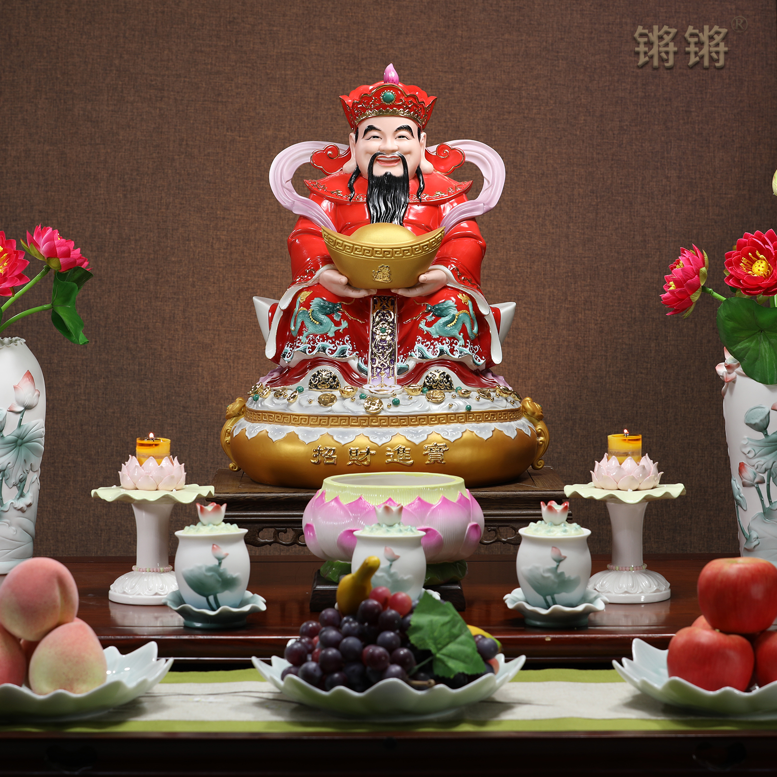 锵锵陶瓷12至19寸财神爷摆件聚宝盆文财神店铺办公室家用供奉神像