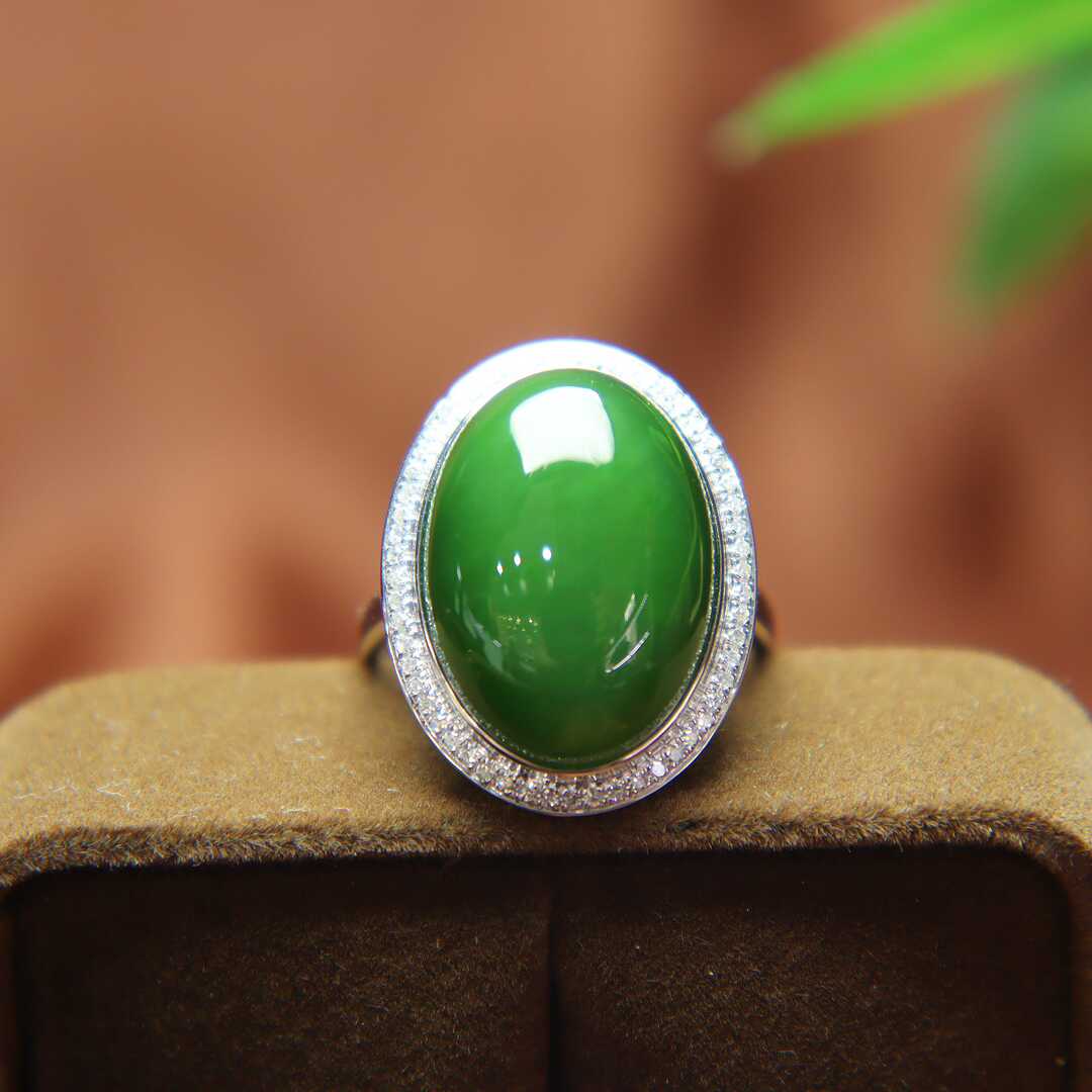 中秋礼品天然和田玉戒指18K金镶嵌老料碧玉指环满钻豪华送老婆a货