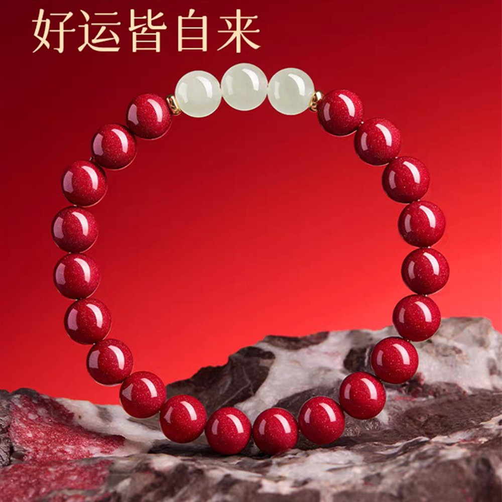 本命年朱砂手串好运紫金砂手链招财简约转运珠绿色手串手链情侣款