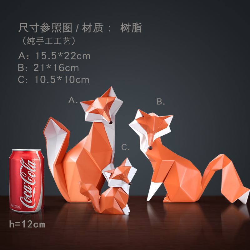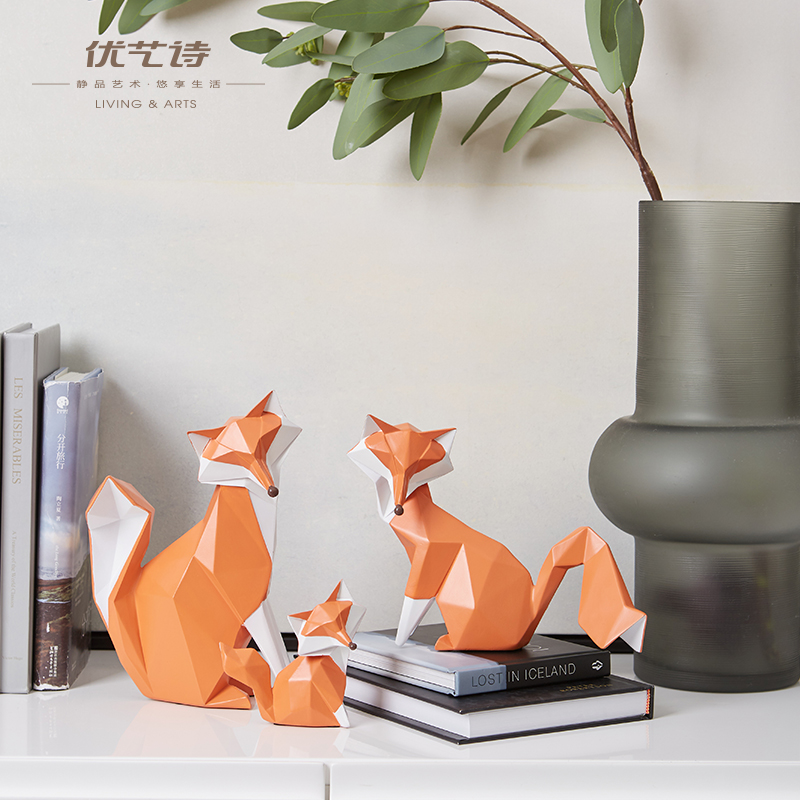 现代简约几何树脂狐狸动物家居摆件样板房装饰儿童房软装工艺品