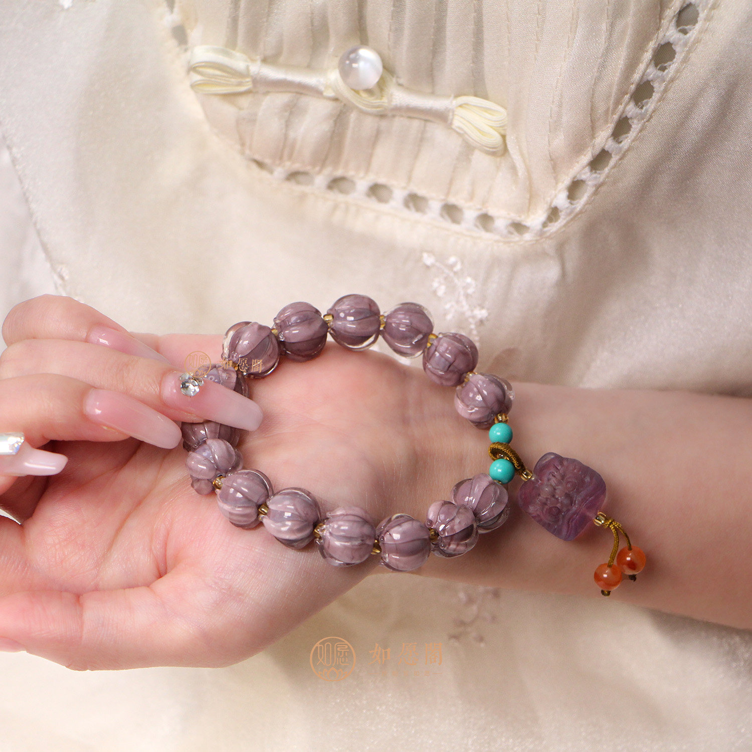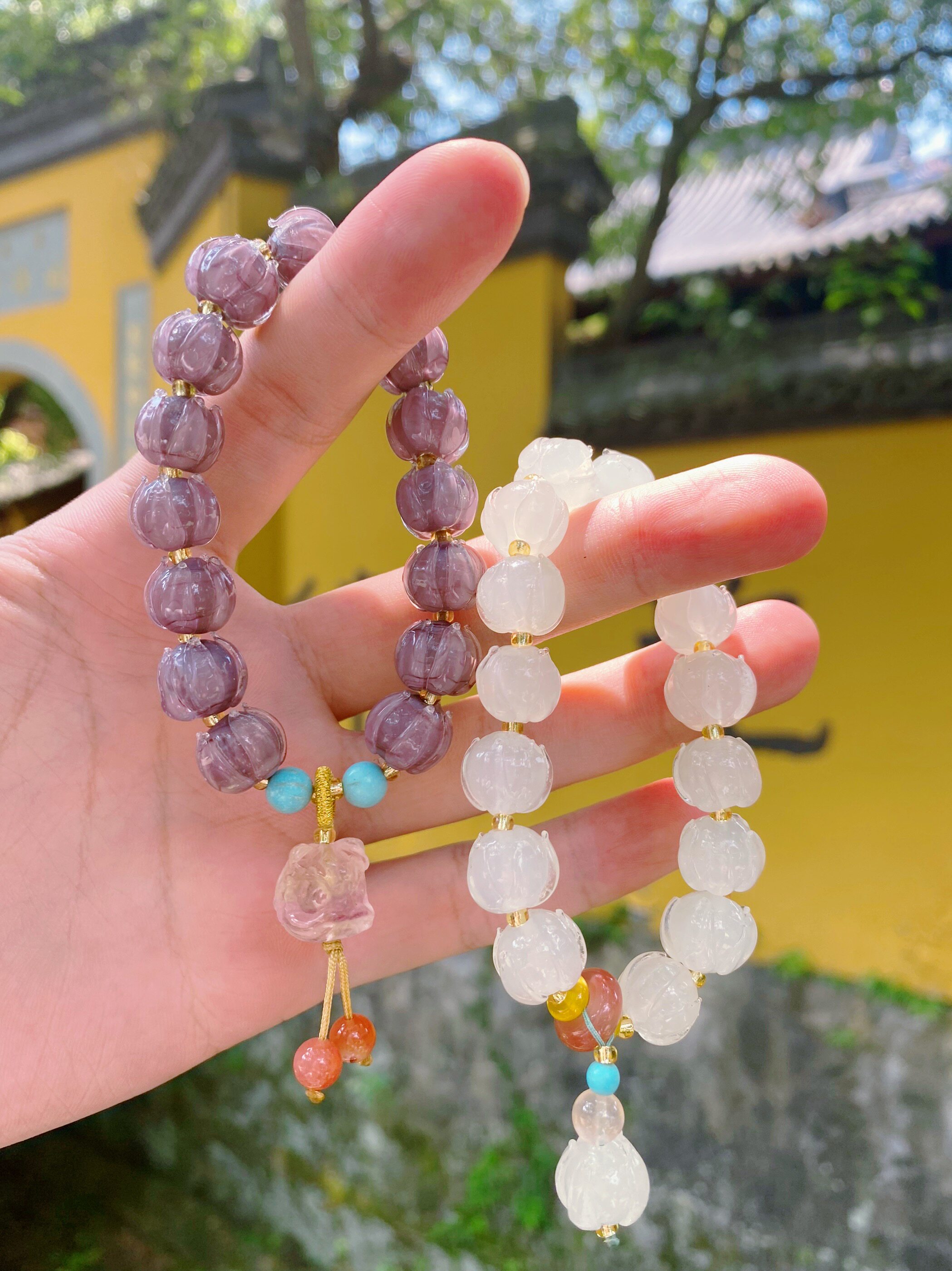 新中式琉璃手串女莲花琉璃天然萤石醒狮手串文玩饰品手链饰品复古