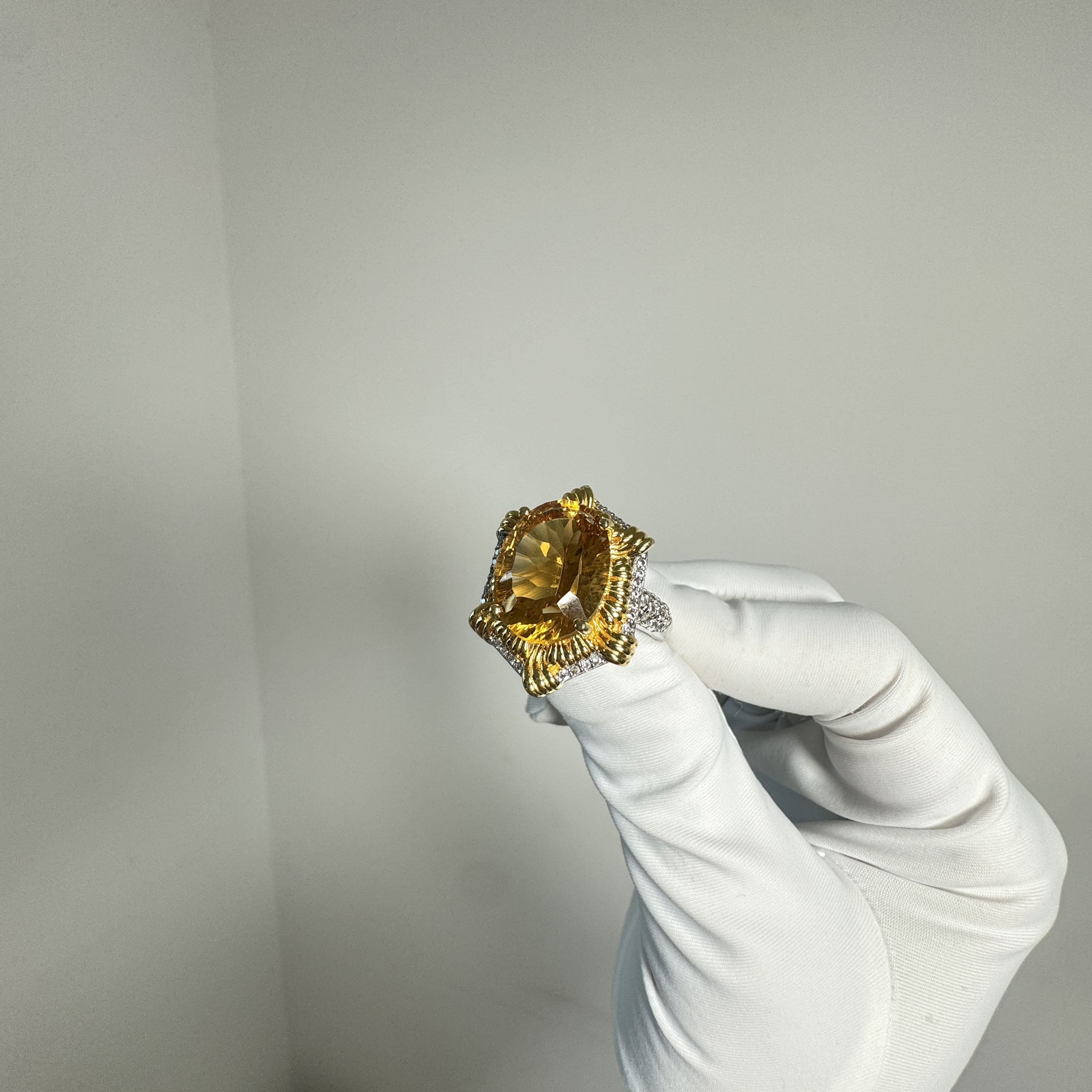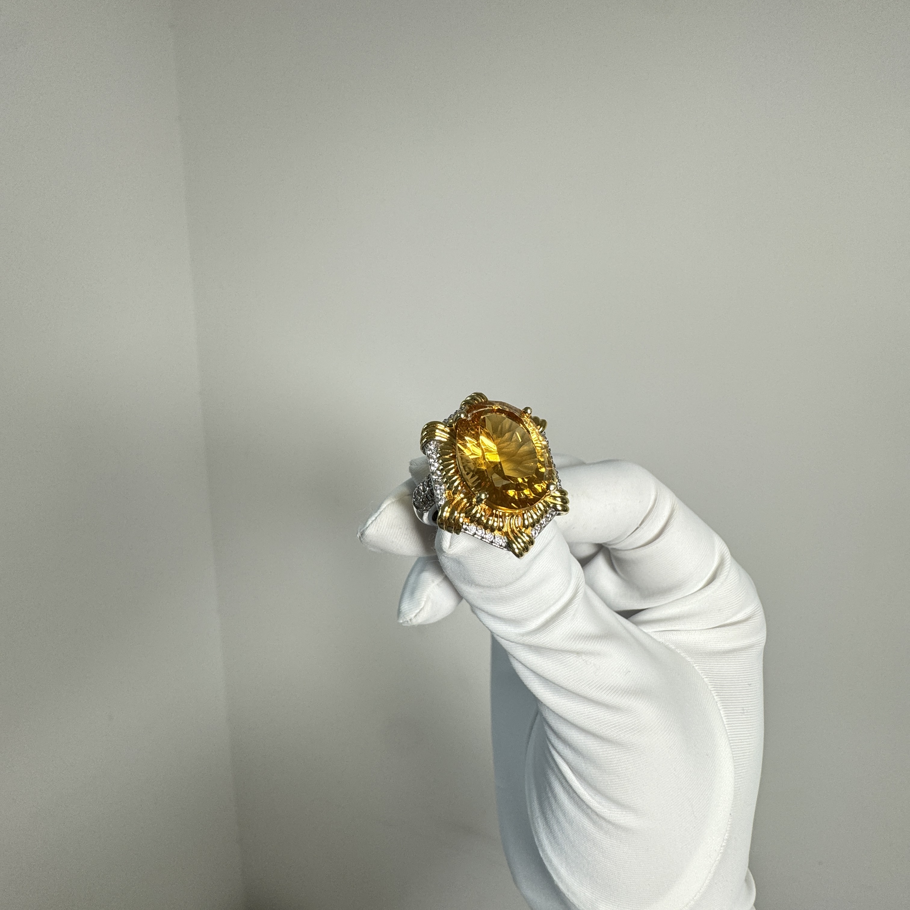 【浓郁复古黄水晶】精品厚银镶嵌天然黄水晶戒指复古时尚大气