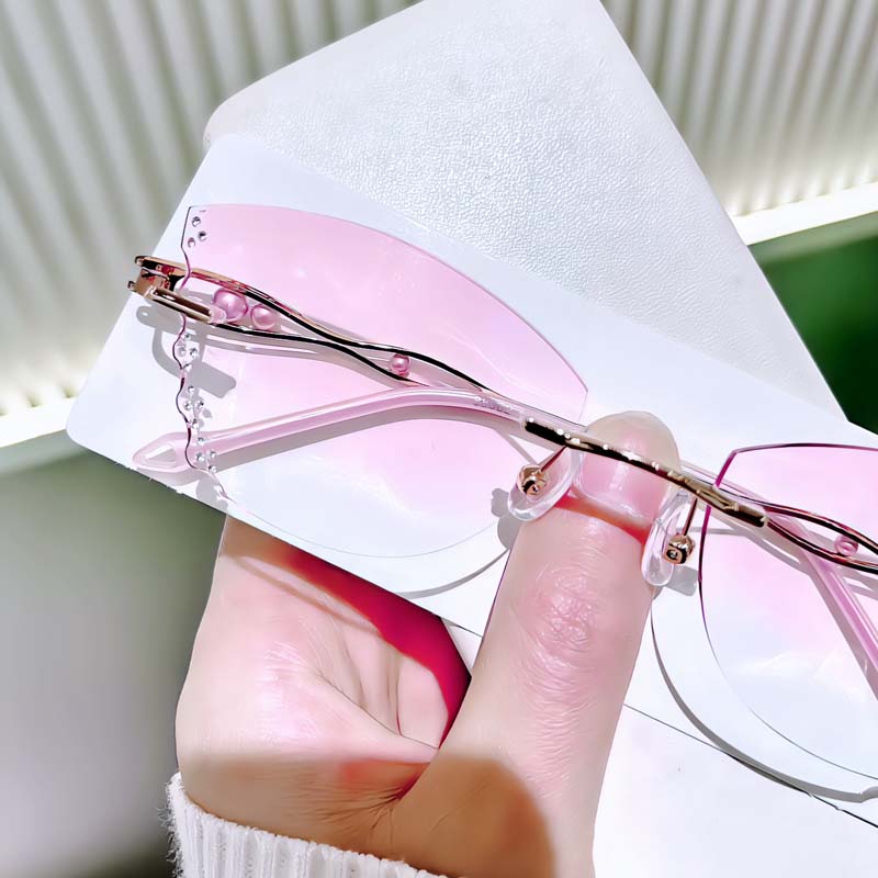 新款ins无框眼镜女近视可配有度数网红款平光超轻显瘦防蓝光变色