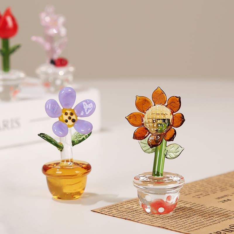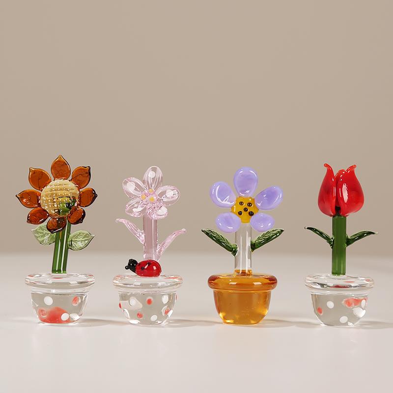 手工琉璃多肉盆栽水晶简约小摆件客厅儿童房玄关样板房博古架装饰
