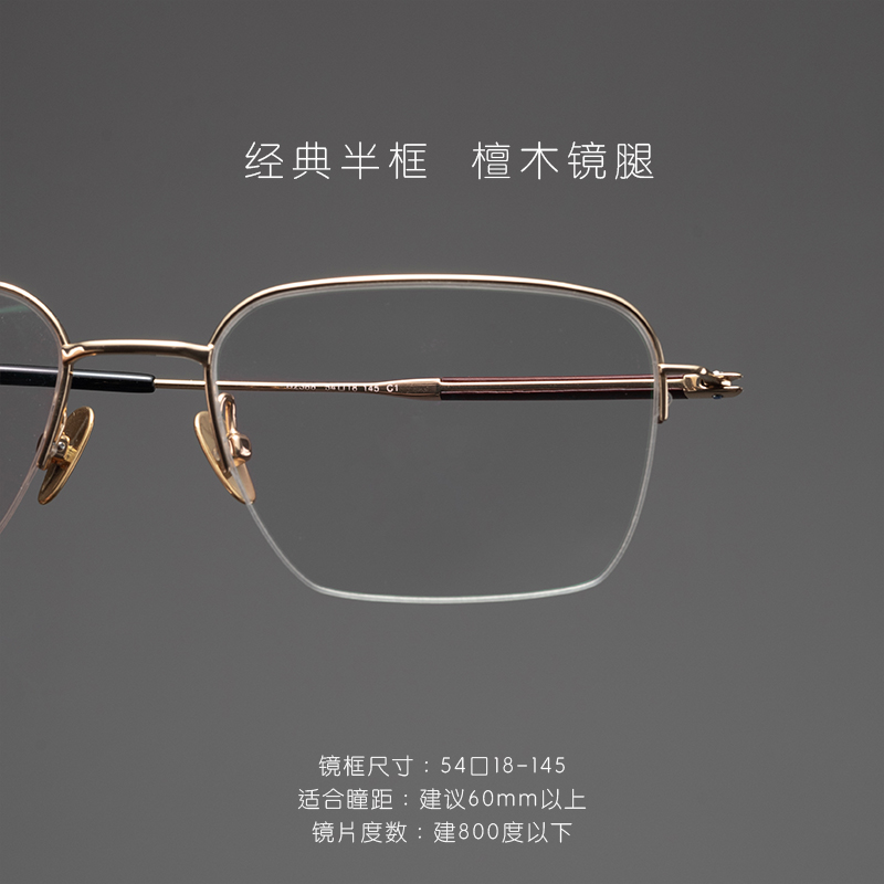 设计师款眼镜框男款超轻纯钛眼镜架可配近视商务气质半框高级感