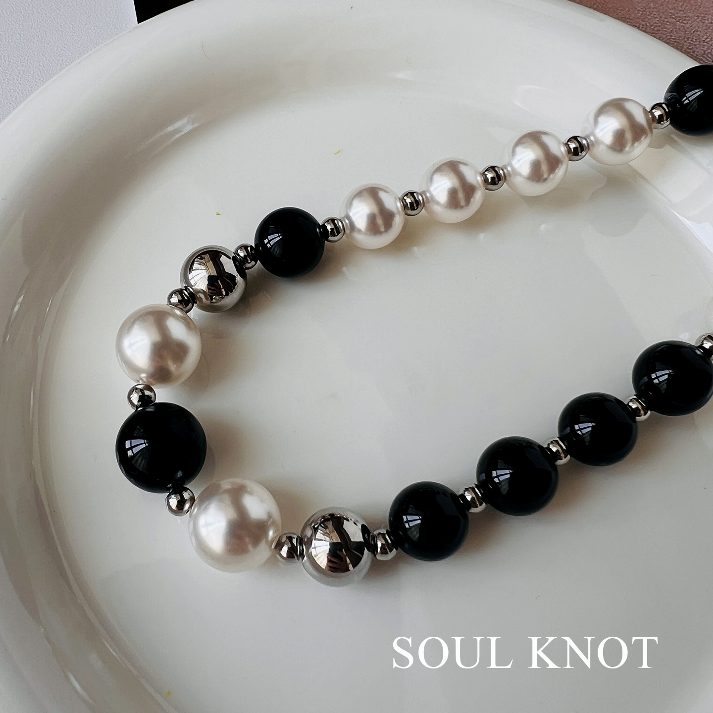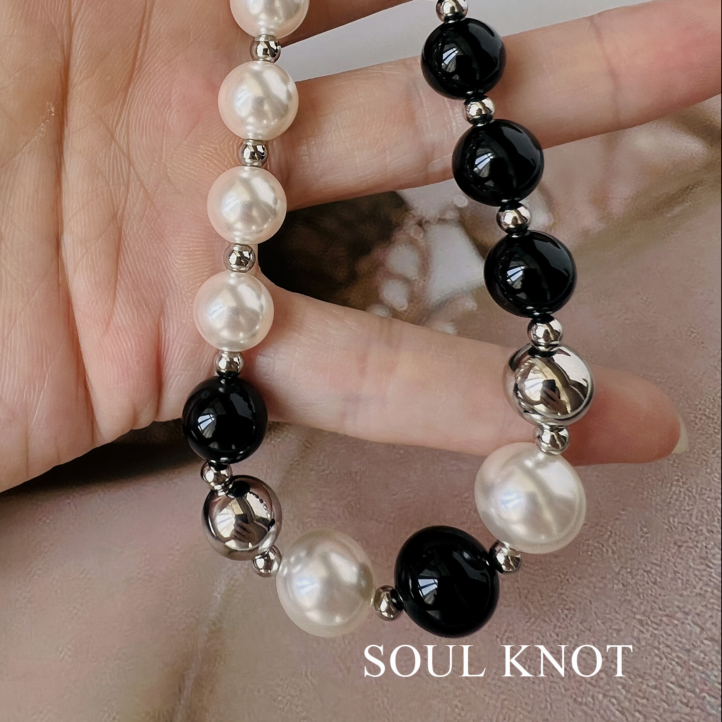 SOUT KNOT小众冷淡风简约黑玛瑙不掉色叠戴拼接穿搭个性撞色项链