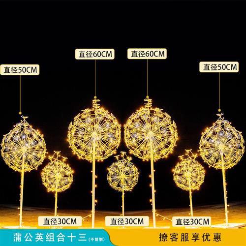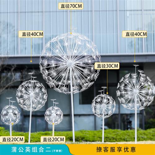 户外草坪铁艺发光蒲公英花朵雕塑不锈钢园林景观美陈装饰品摆件