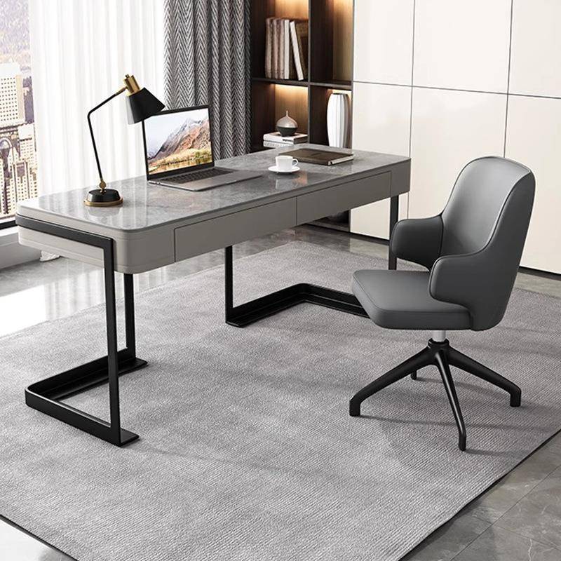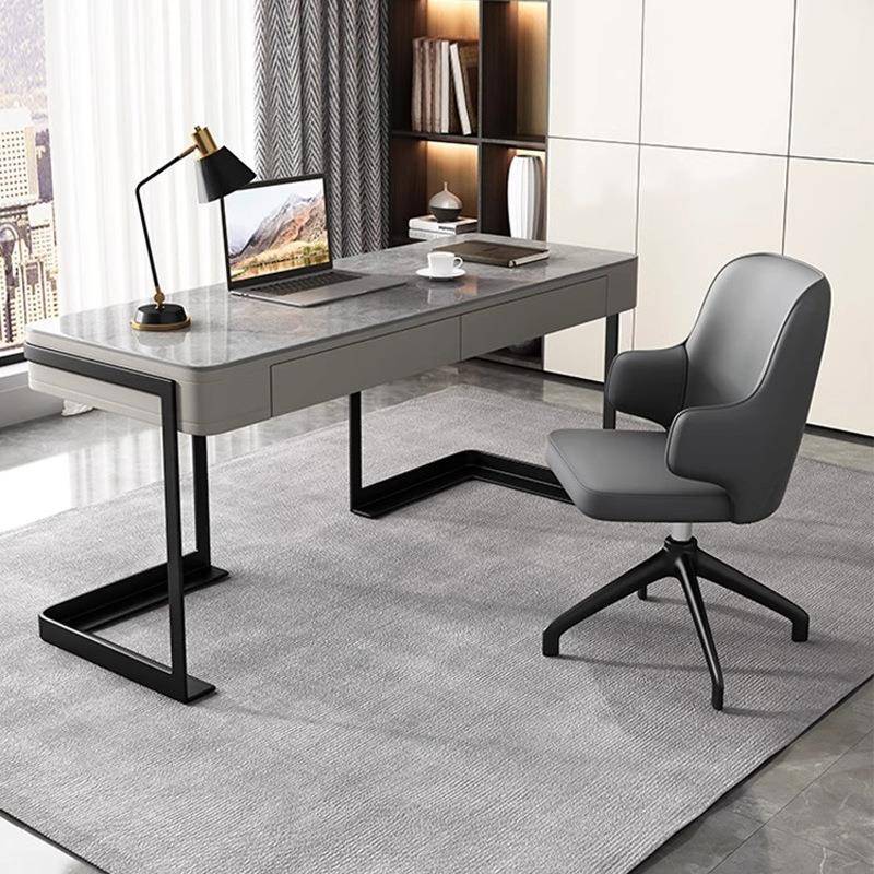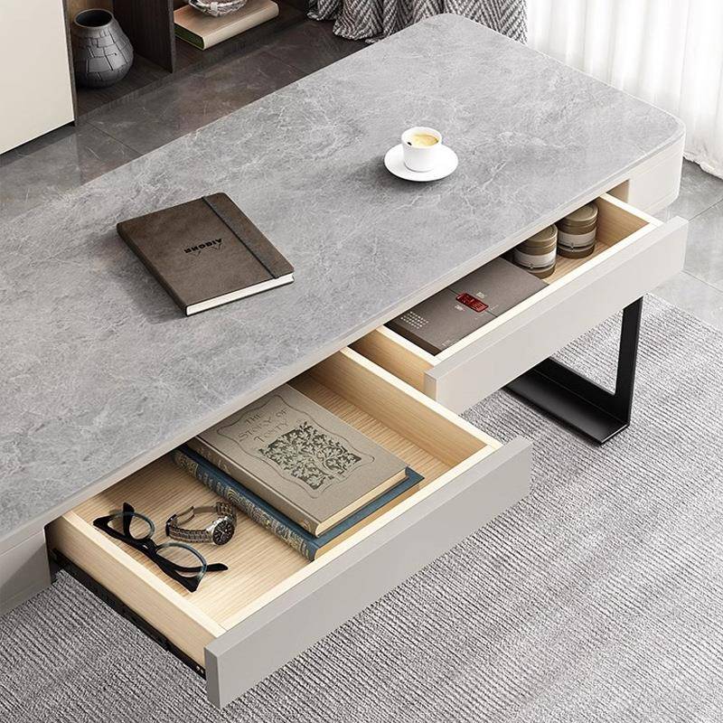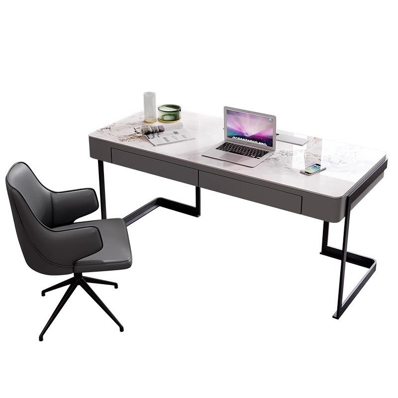 意式极简亮光岩板书桌现代轻奢书房家用小户型台式电脑写字办公桌