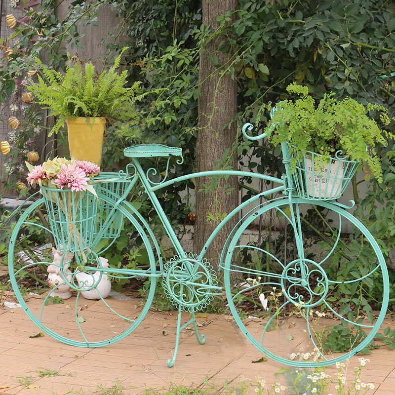欧式创意摆件饰品家具商场店铺z橱窗装饰道具田园铁艺自行车花架