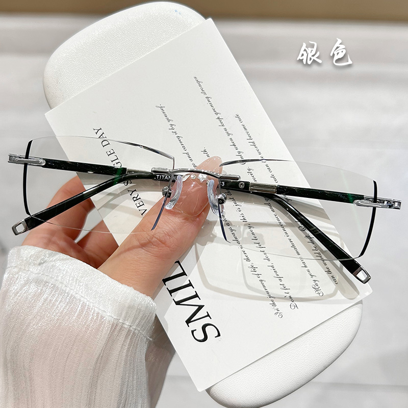 超轻无框近视眼镜男仿檀木可配有度数纯钛无边框潮变色防雾防蓝光
