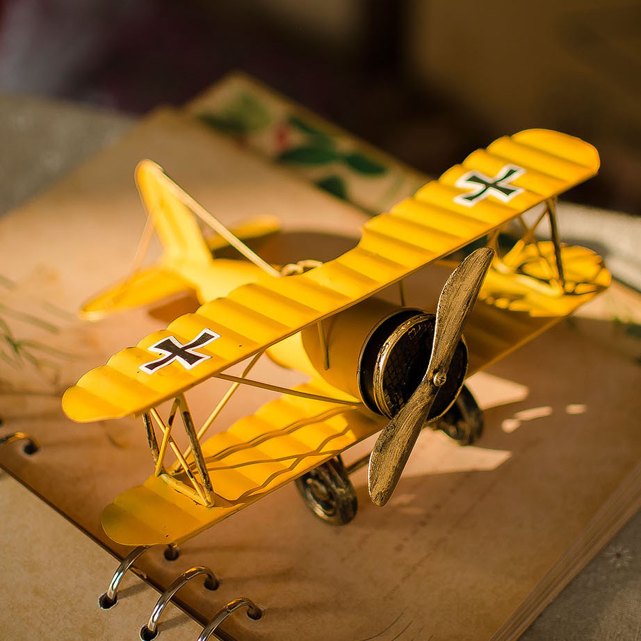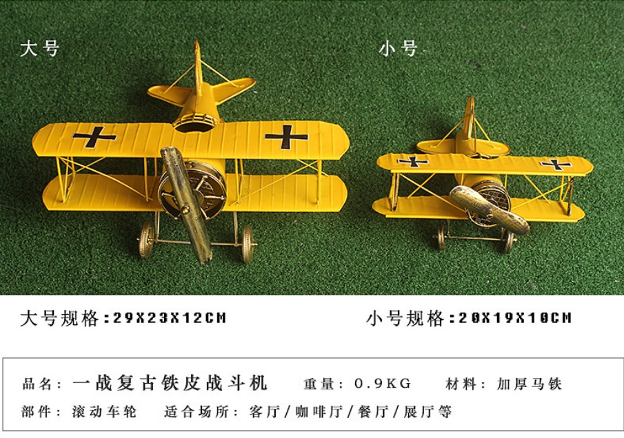 复古铁艺双翼飞机模型做旧铁皮飞机礼品礼物摄影道具做旧桌面摆件