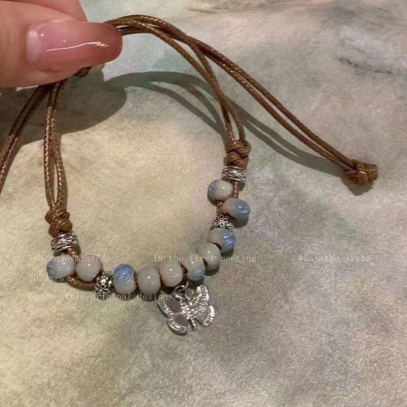 新中式蝴蝶玻璃串珠编织2024新款复古国潮民族风手饰爆款