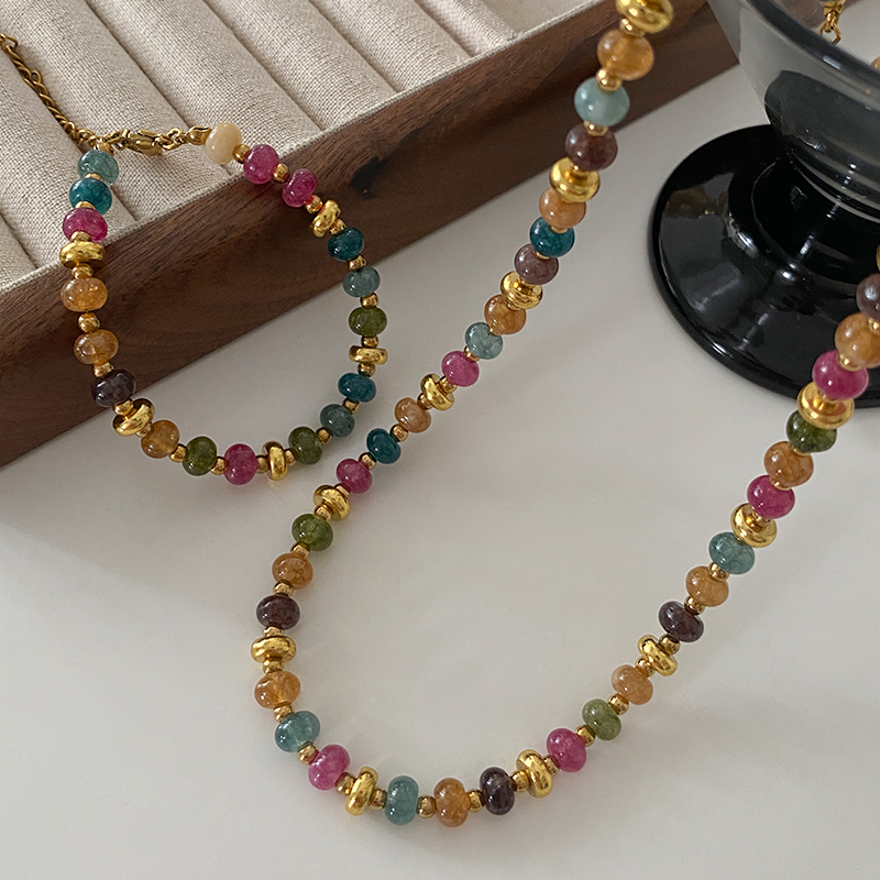 多巴胺串珠碧玺项链彩色天然石锁骨链2024新款爆款高级感轻奢颈链