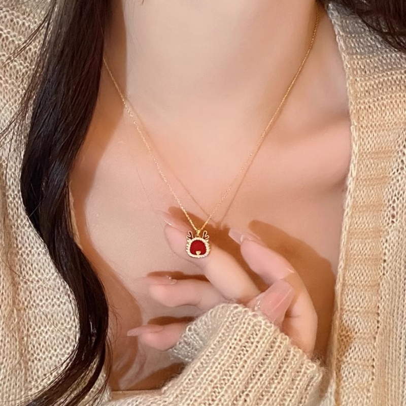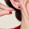 可爱镶钻红色龙年新年耳饰女耳环2023年新款潮耳钉过年耳饰女项链