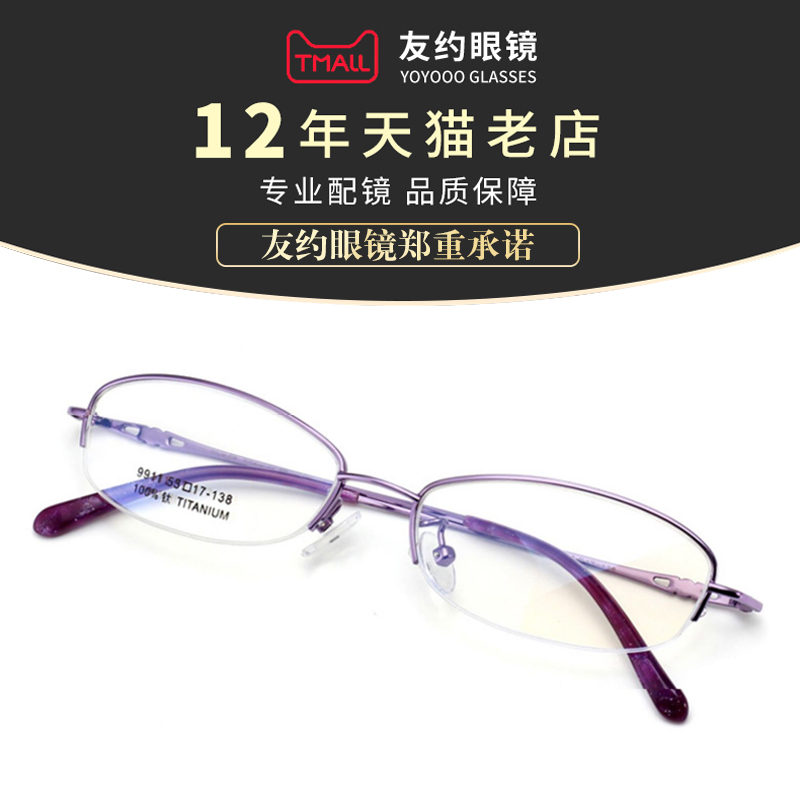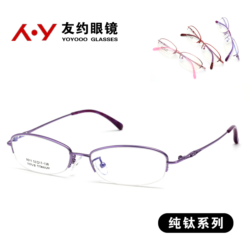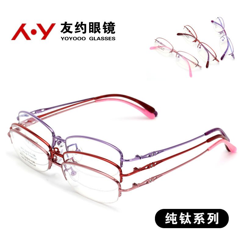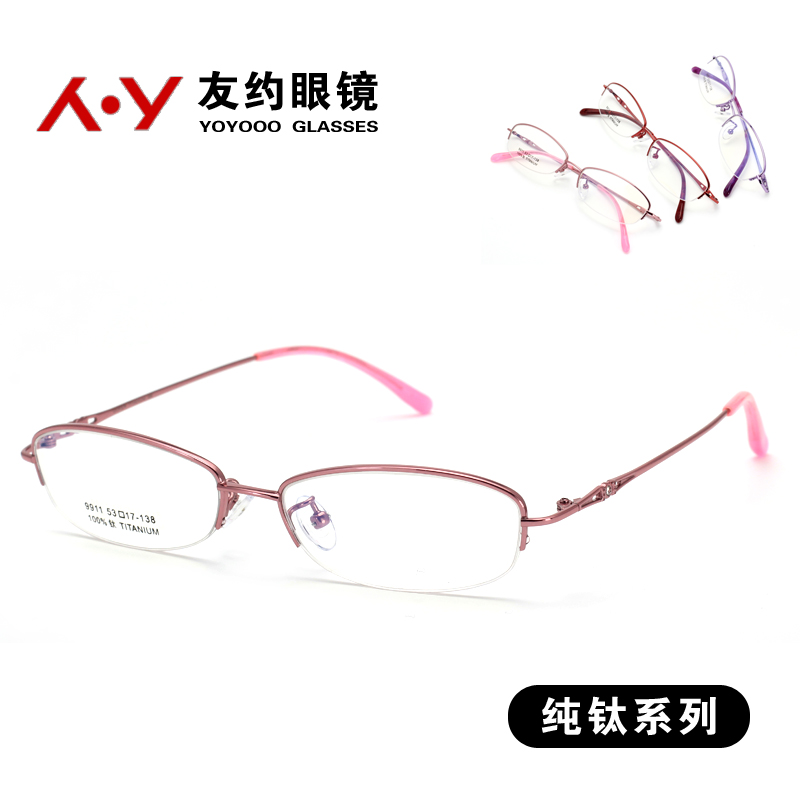 百微女款纯钛近视眼镜架 女款近视半框眼镜架 近视眼镜框架配镜