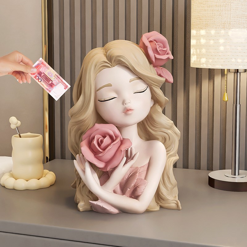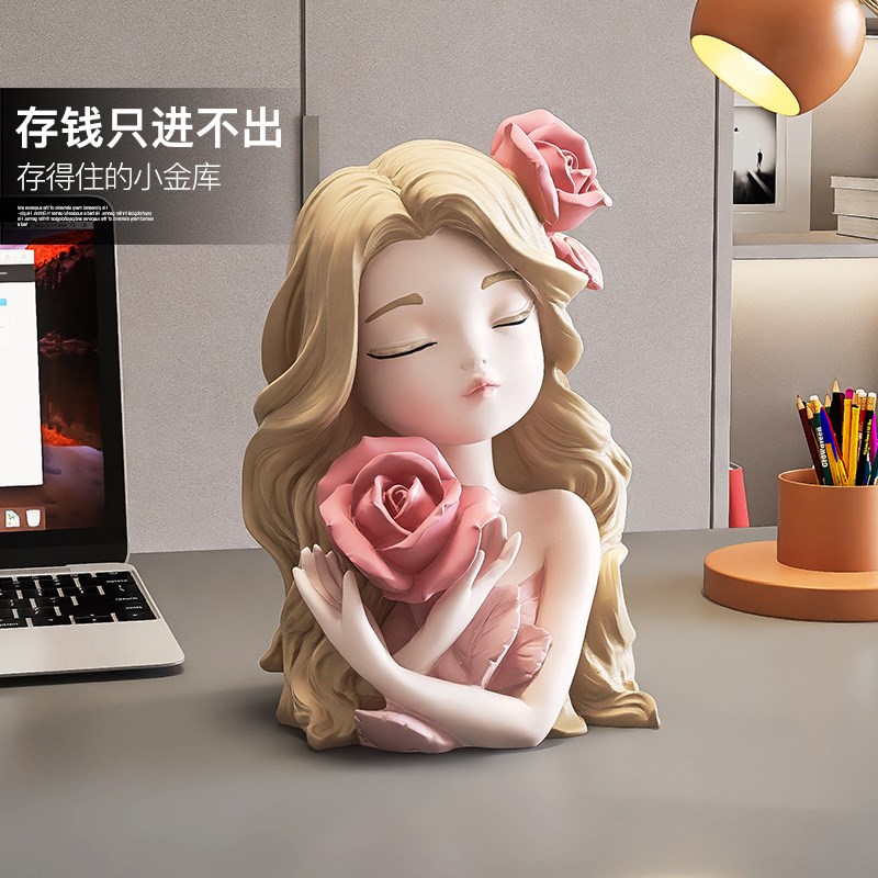 捧花女孩存钱罐奶油风客厅入户玄关酒柜摆件儿童房装饰品生日礼物