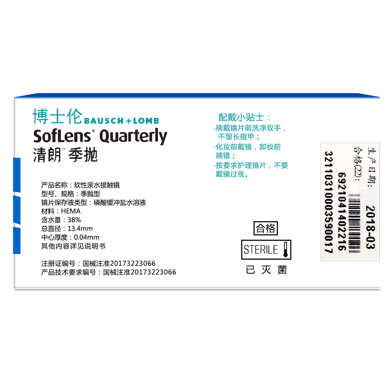 博士伦清朗隐形近视眼镜季抛2片装大小直径3月抛旗舰店官网正品