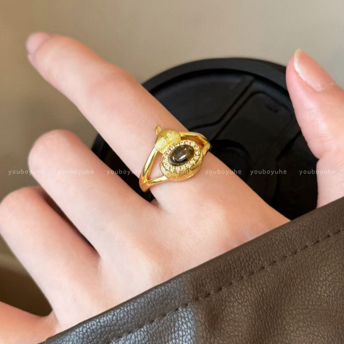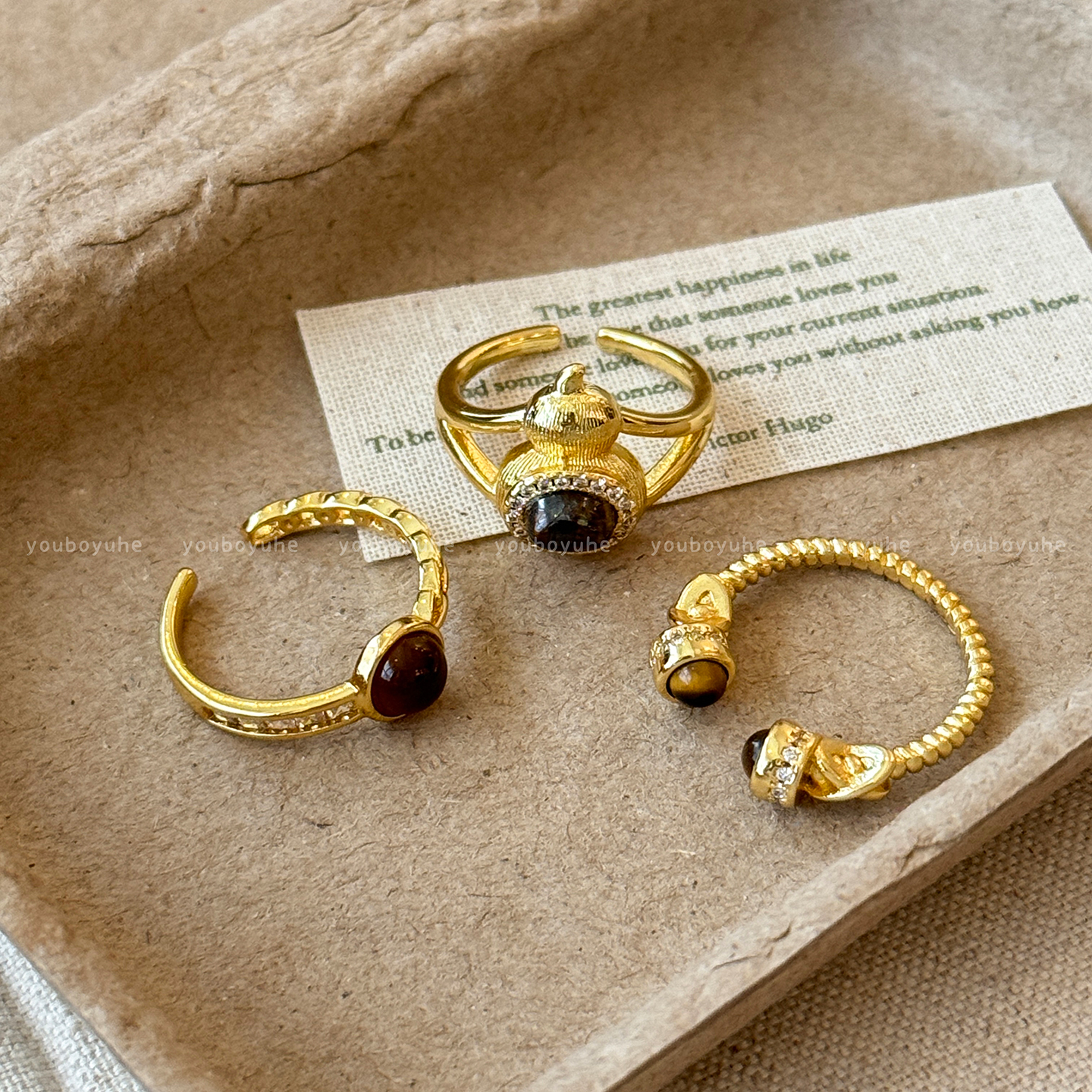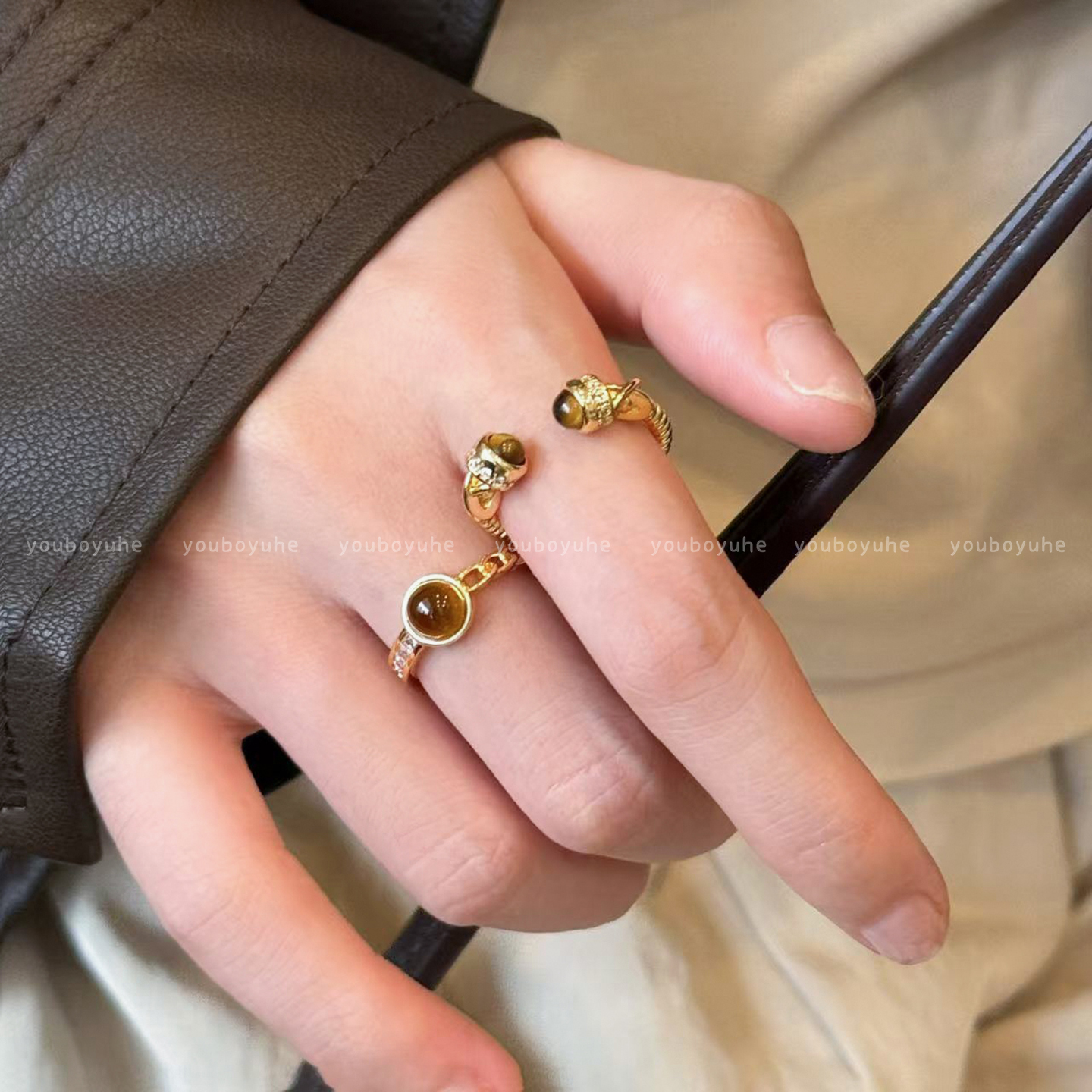 美拉德虎眼石戒指女轻奢高级感叠戴食指戒小众设计开口可调节指环