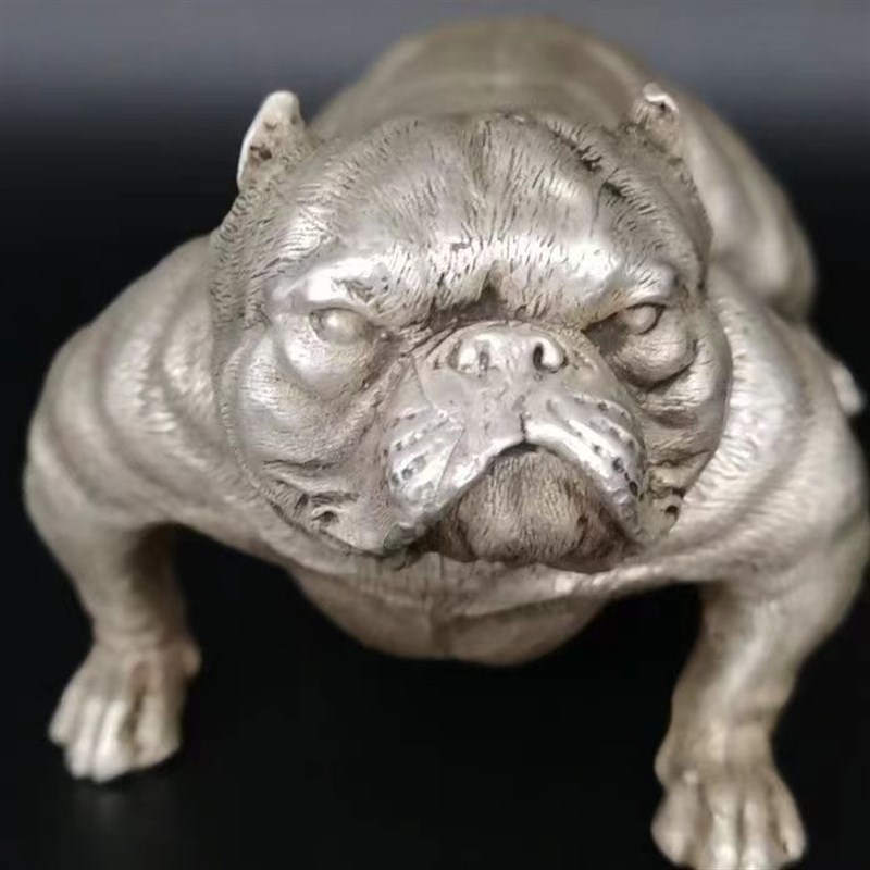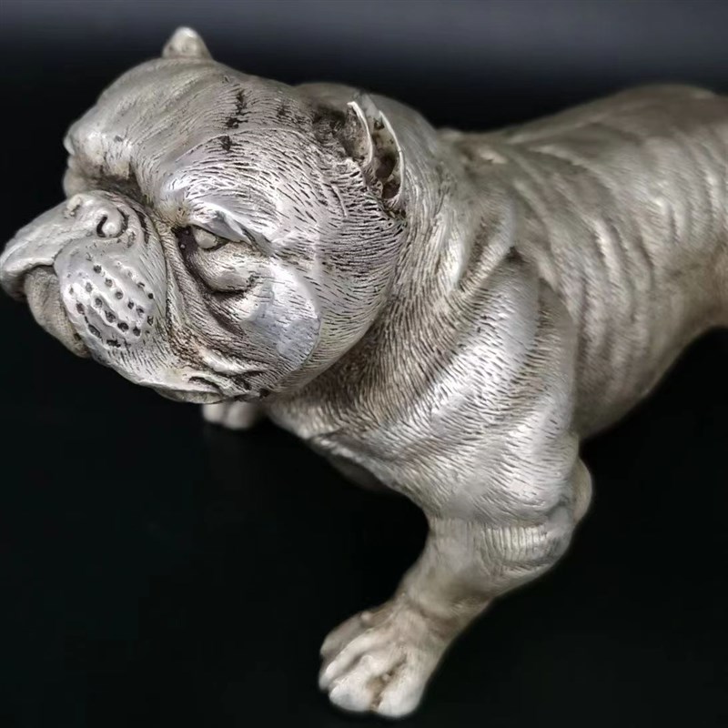 铜生肖狗白铜斗牛犬狗做旧沙皮小公F狗憨态可掬工艺精美宠物窝装