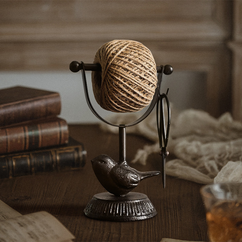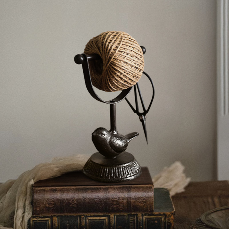 欧式复古铸铁工艺小鸟麻绳线整理架摆件花园阳台装饰桌面收纳架