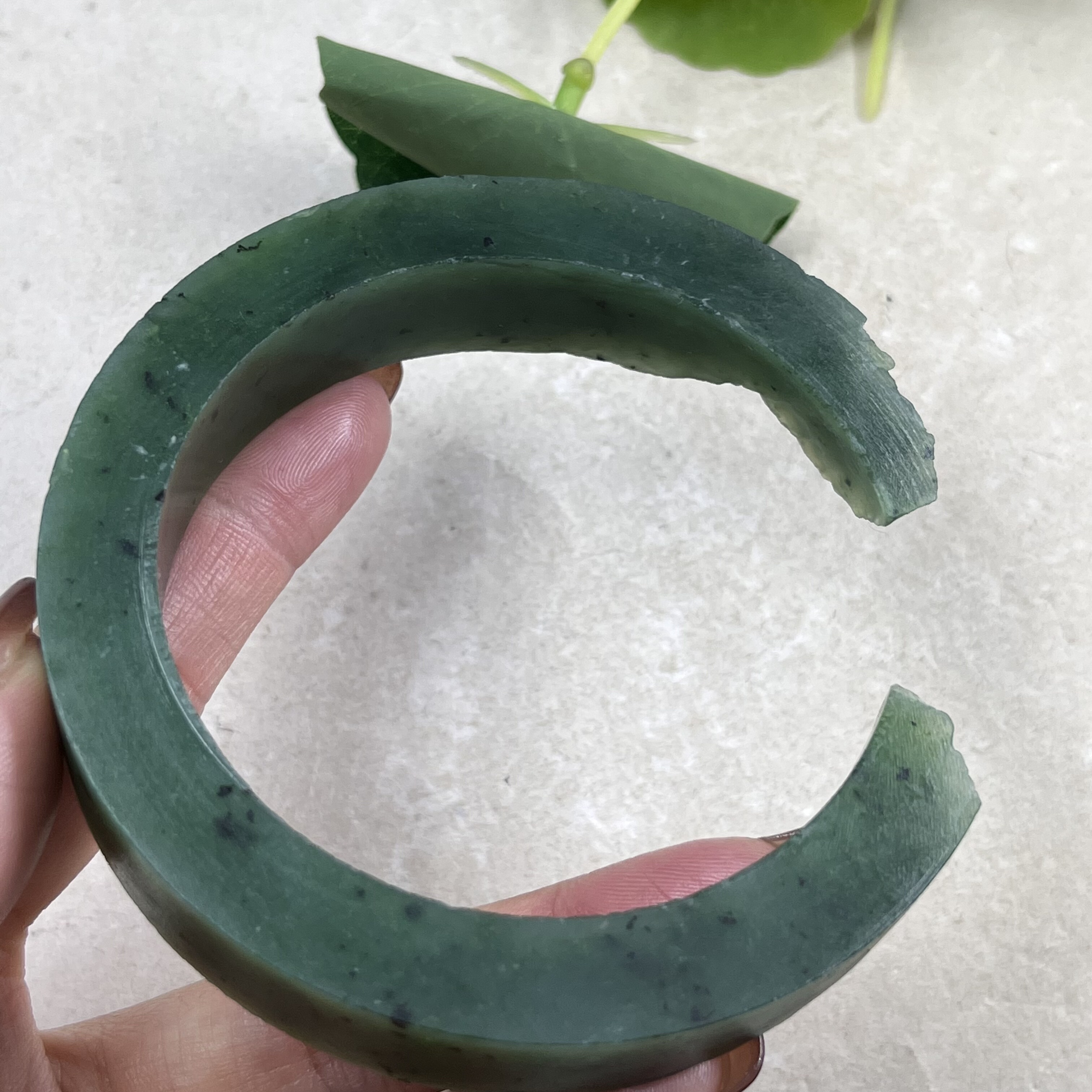 新疆和田玉碧玉菠菜绿手镯边角料月牙下脚料DIY半镯半链包邮70克t