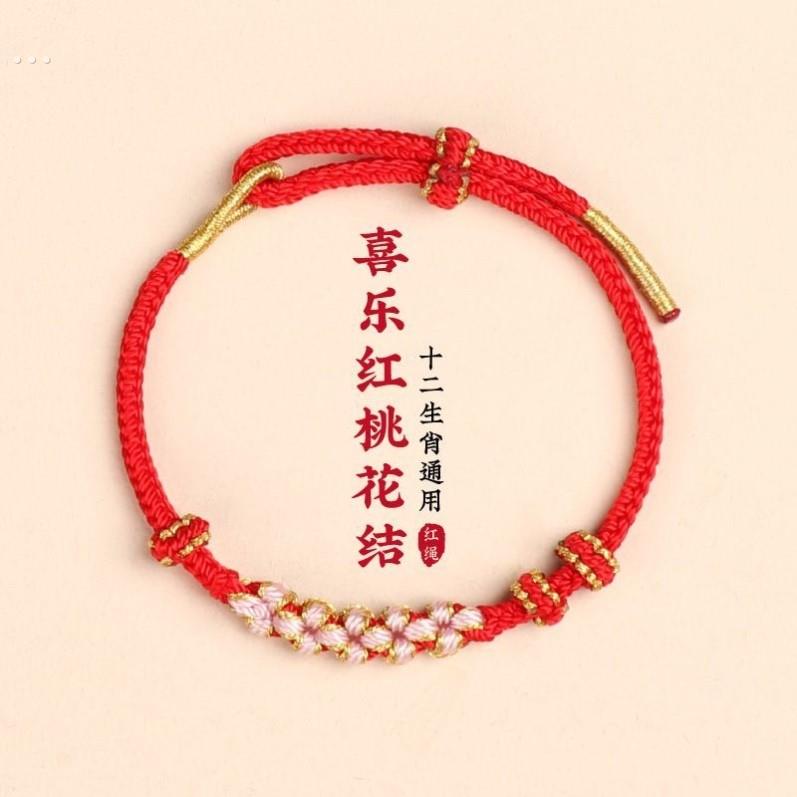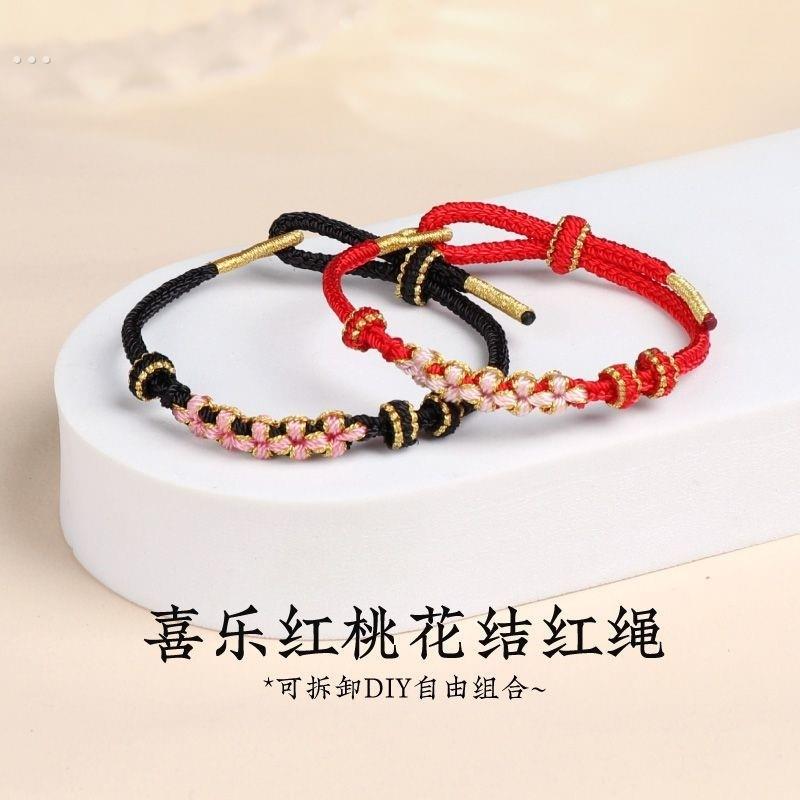 桃花结手链手工编织铃兰花手绳本命年可串珠半成品diy红绳男女