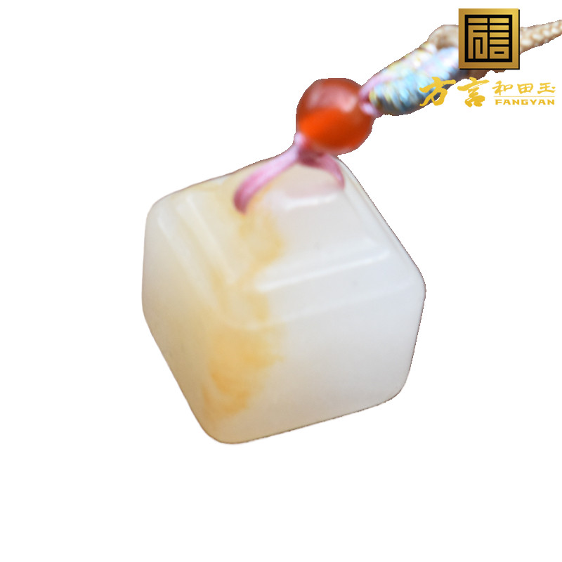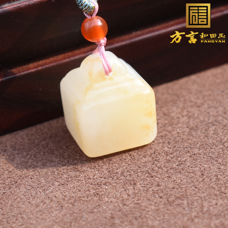方言精品和田玉特色佩戴级细腻油润金丝玉方形小印章挂坠挂件R1
