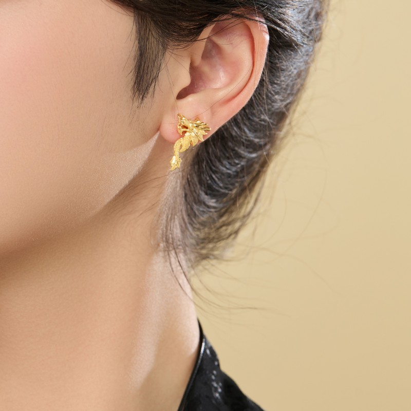 周生生黄金耳钉生生有囍龙凤耳环足金结婚耳饰耳坠68742E