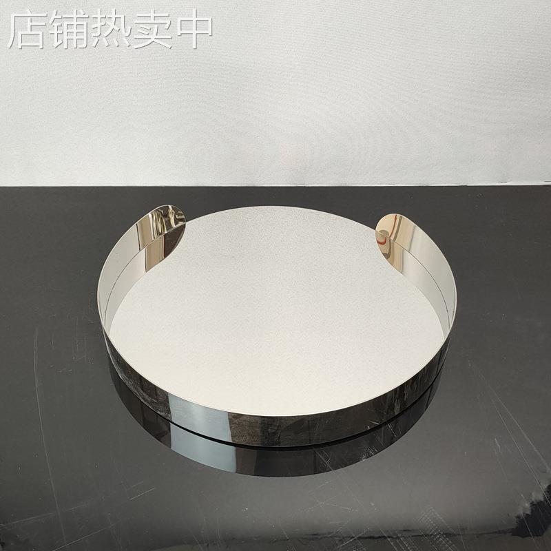 简约现代电镀金属银色几何圆形托盘摆件酒店客厅茶几桌面装饰品