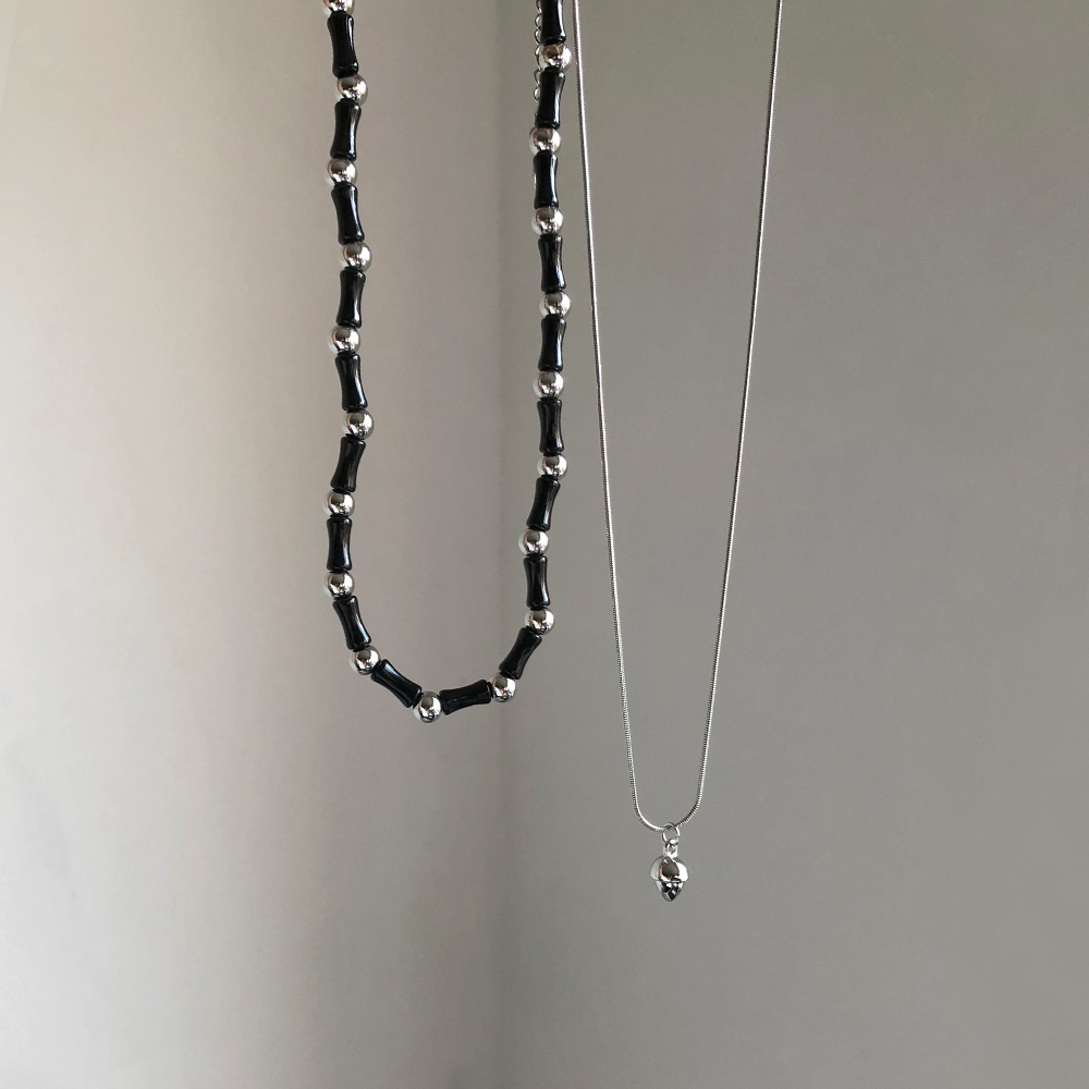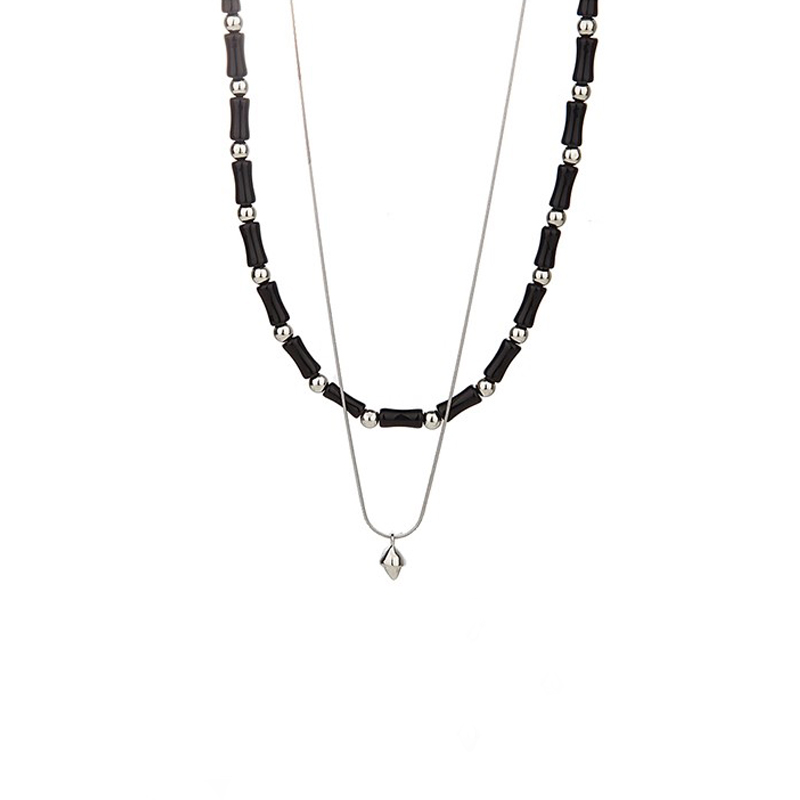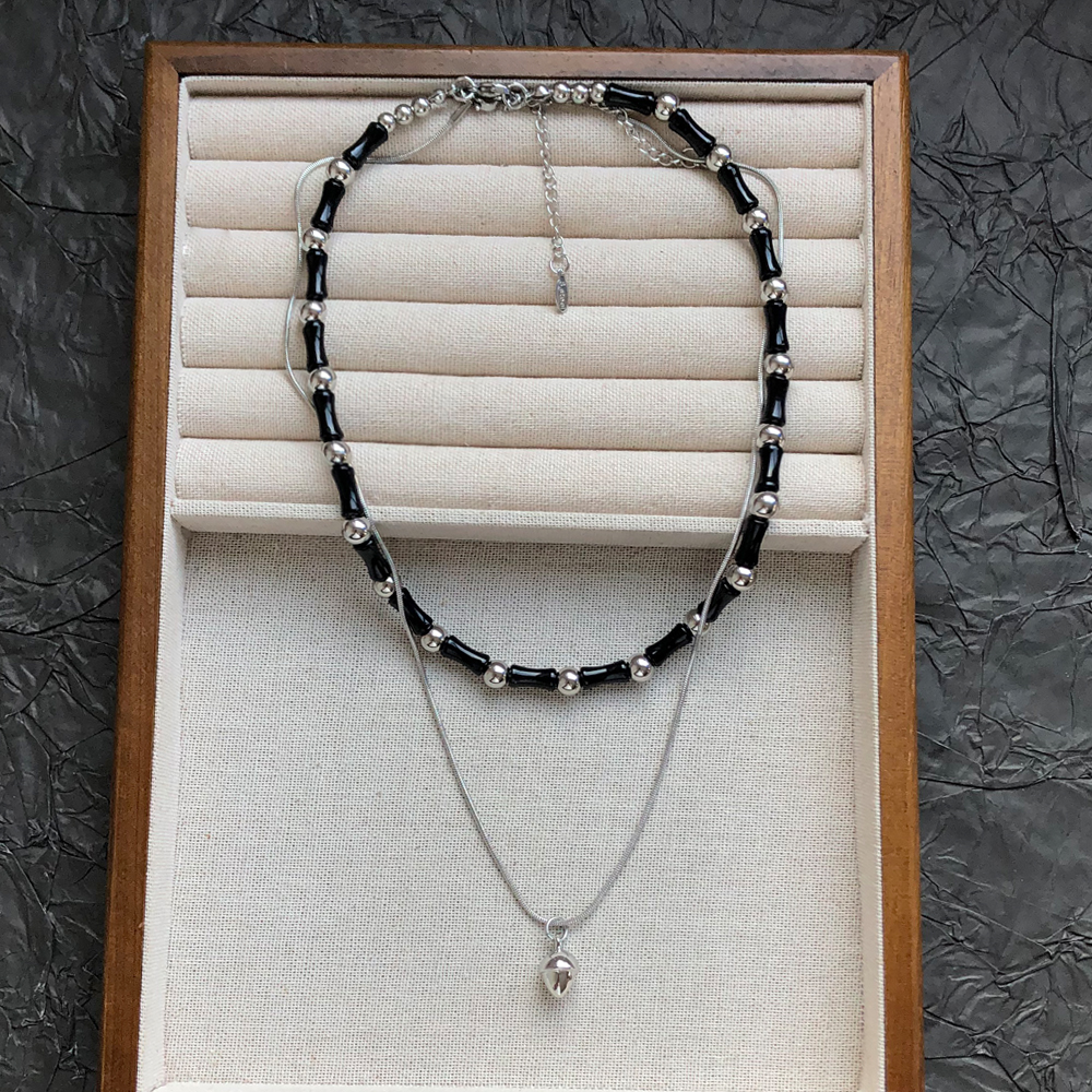 新中式国潮黑色竹节串珠项链女双层叠戴轻奢卫衣链气质百搭锁骨链