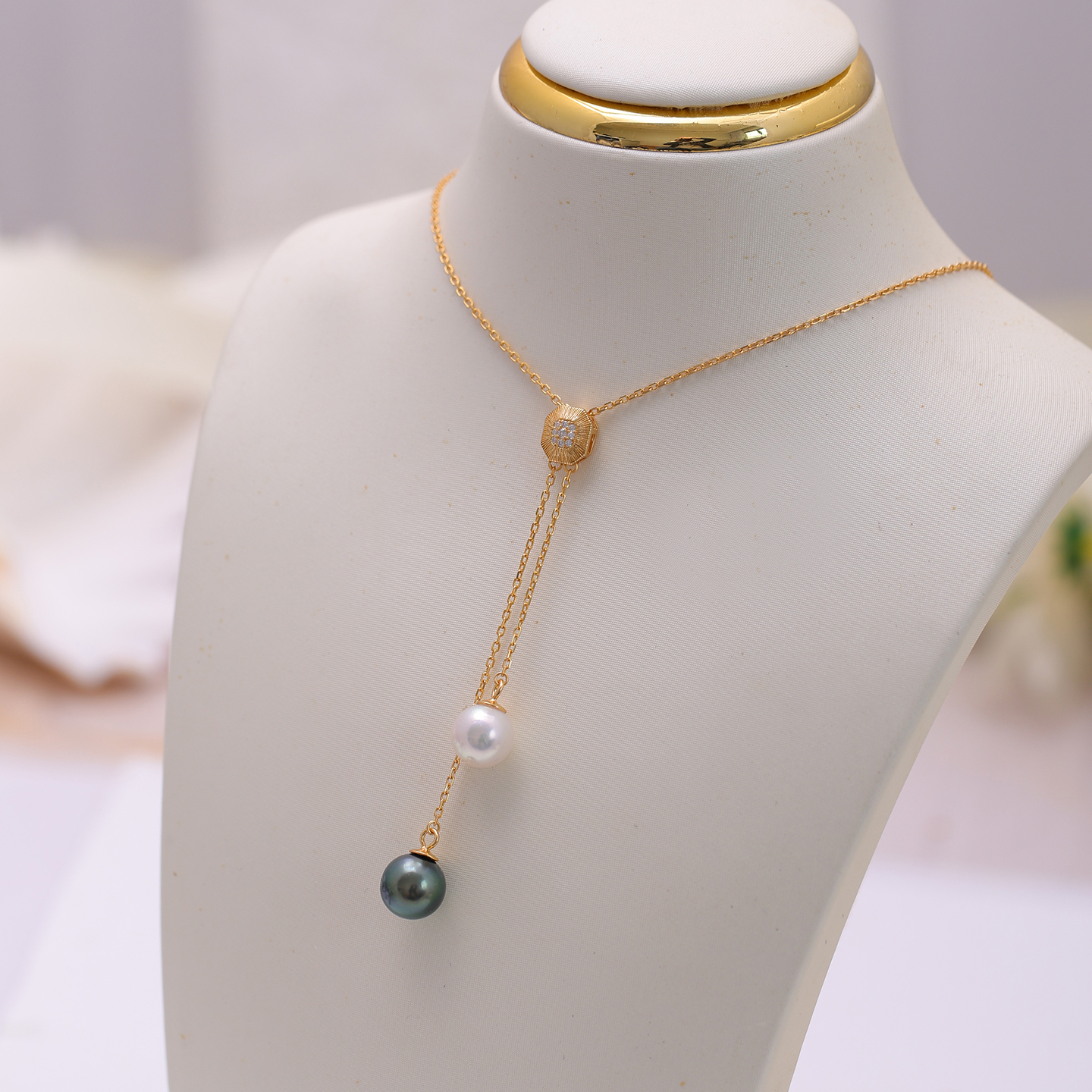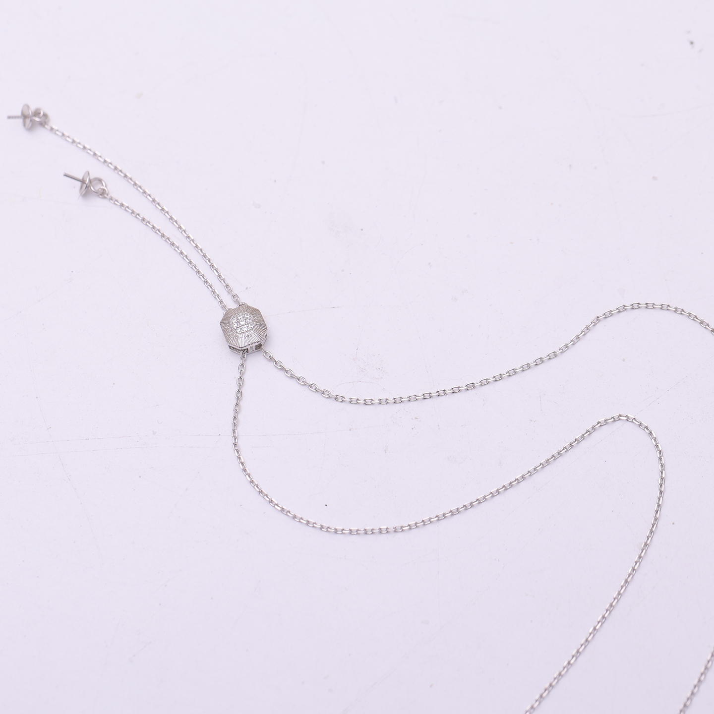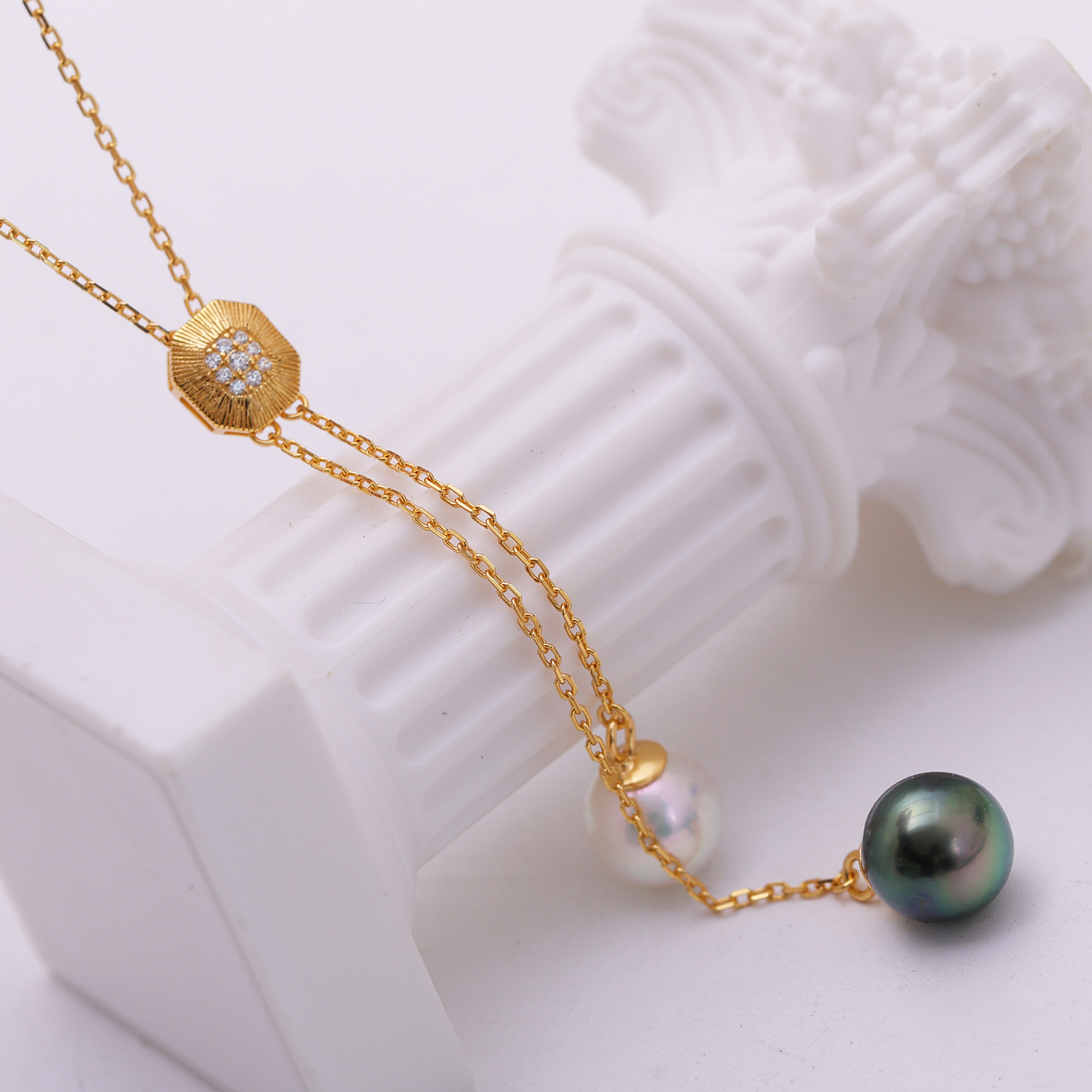 DIY珍珠配件s925纯银复古麻纱方形双珠气质套链项坠一体链7-10mm