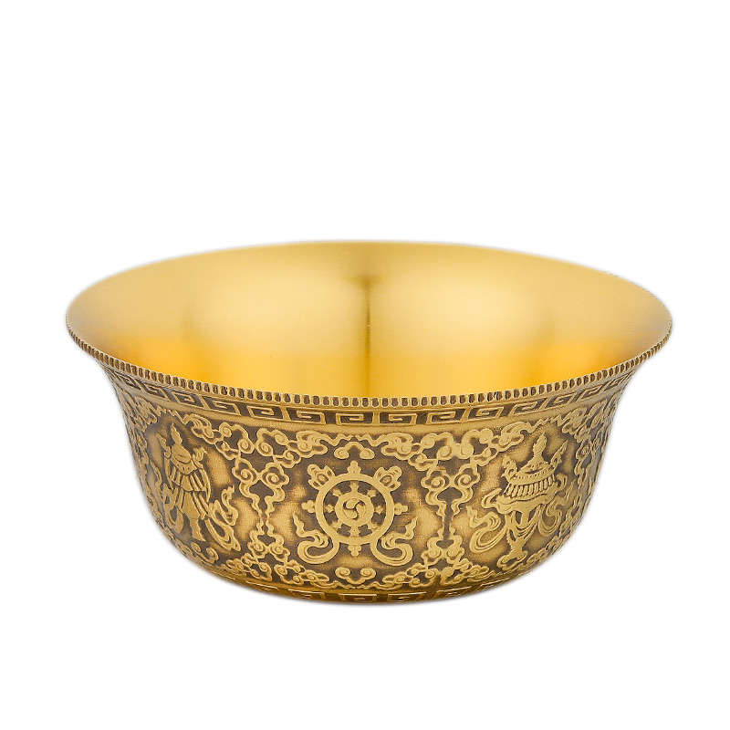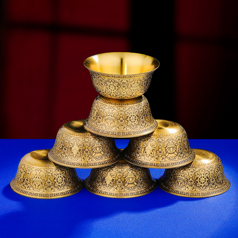 铜雕花八吉祥供水碗铜供水杯供具用品敬水杯大小号供水碗7只