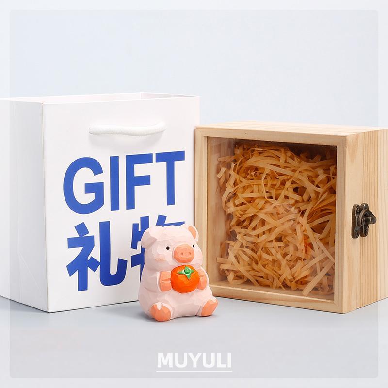 手工木雕小猪摆件丨办公室办公桌工位稳定情绪桌面装饰生肖礼物女