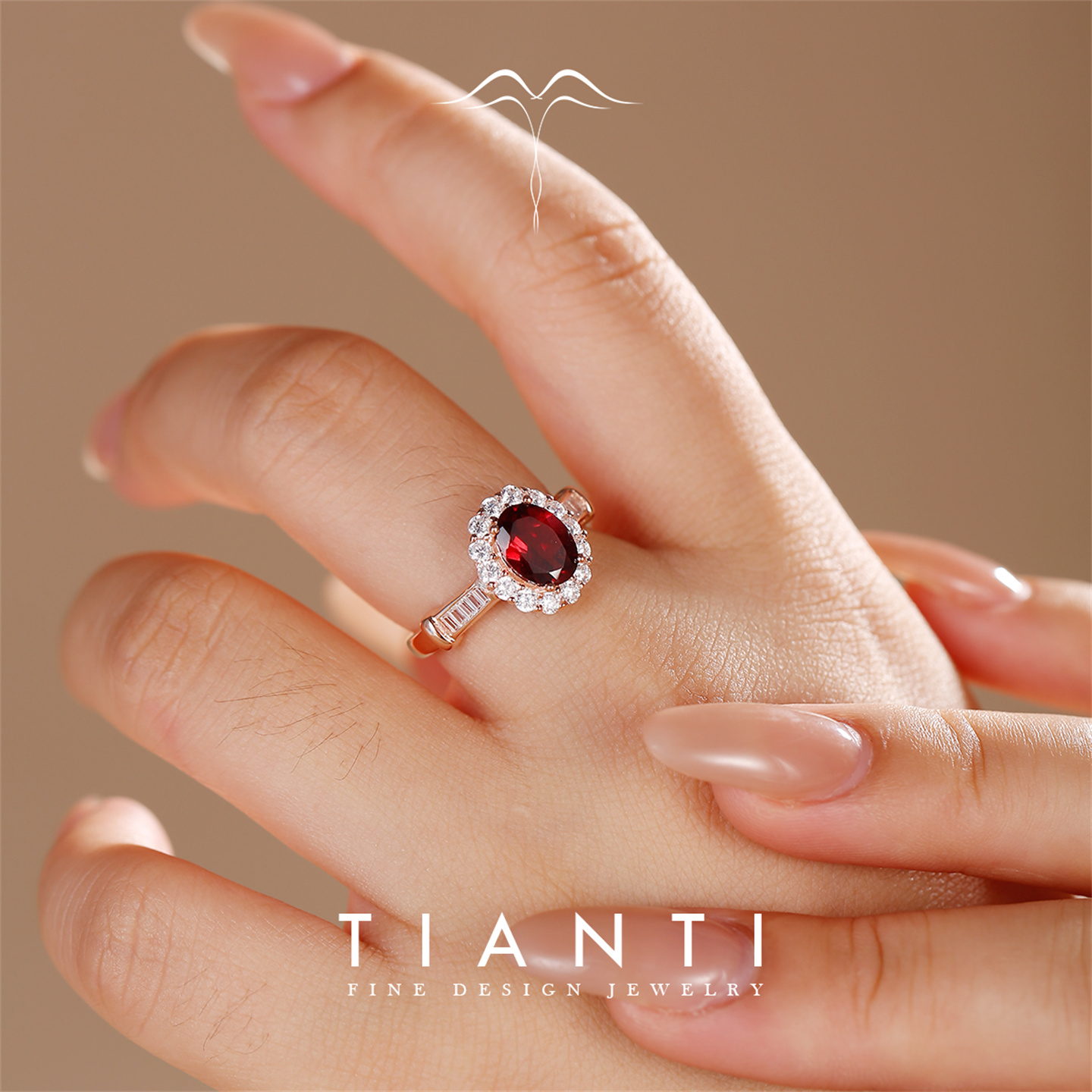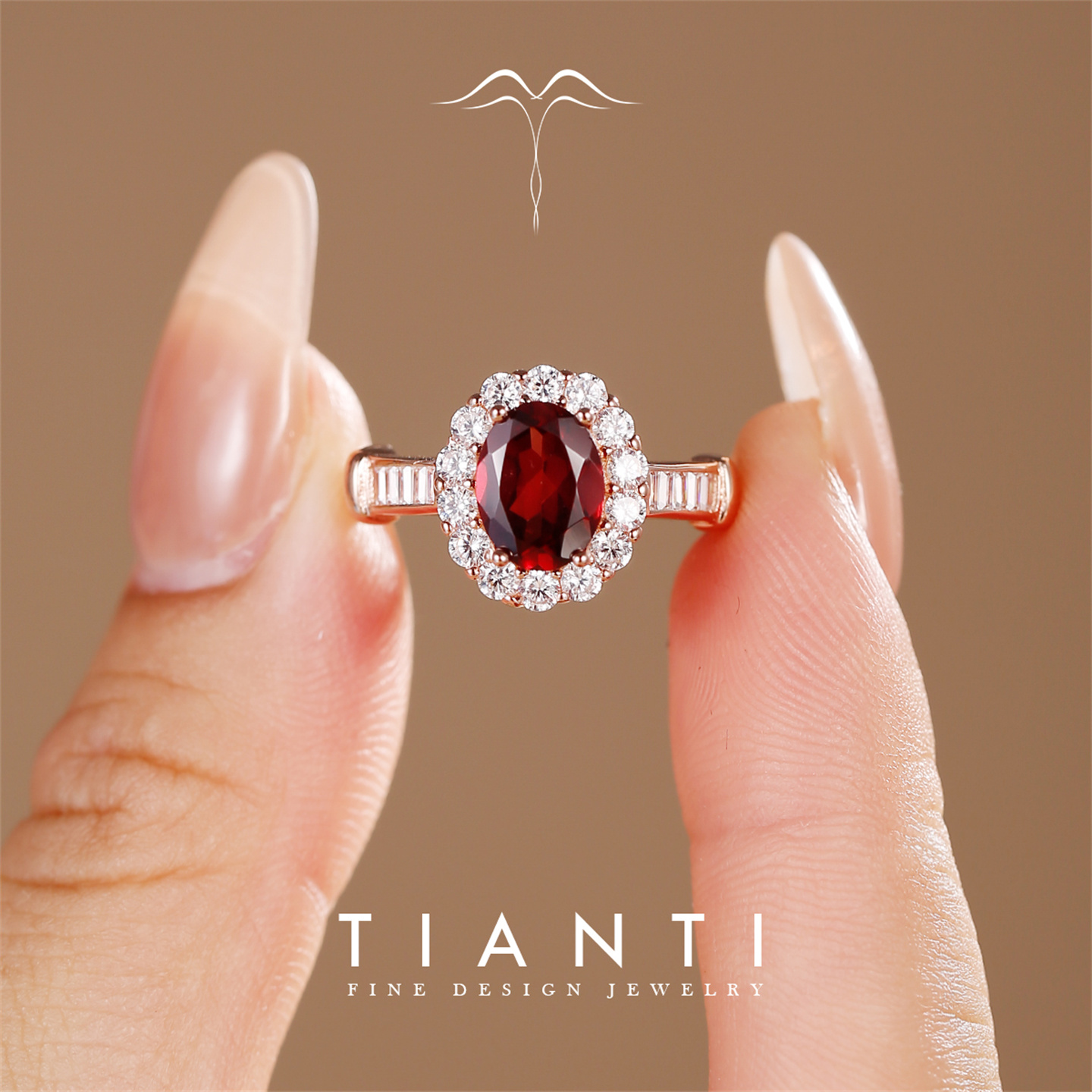 1.5克拉天然红石榴石宝石戒指S925纯银镀18K玫瑰金复古镶钻活口女