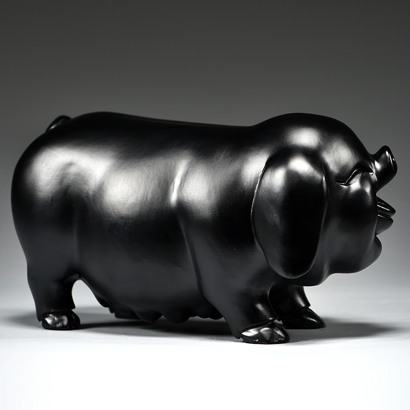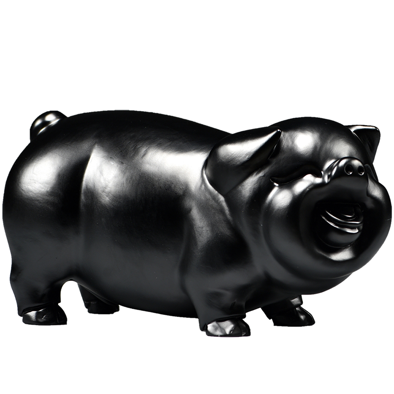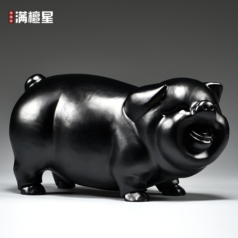 黑色猪摆件实木雕刻十二生肖黑色猪客厅办公电视柜补角装饰工艺品