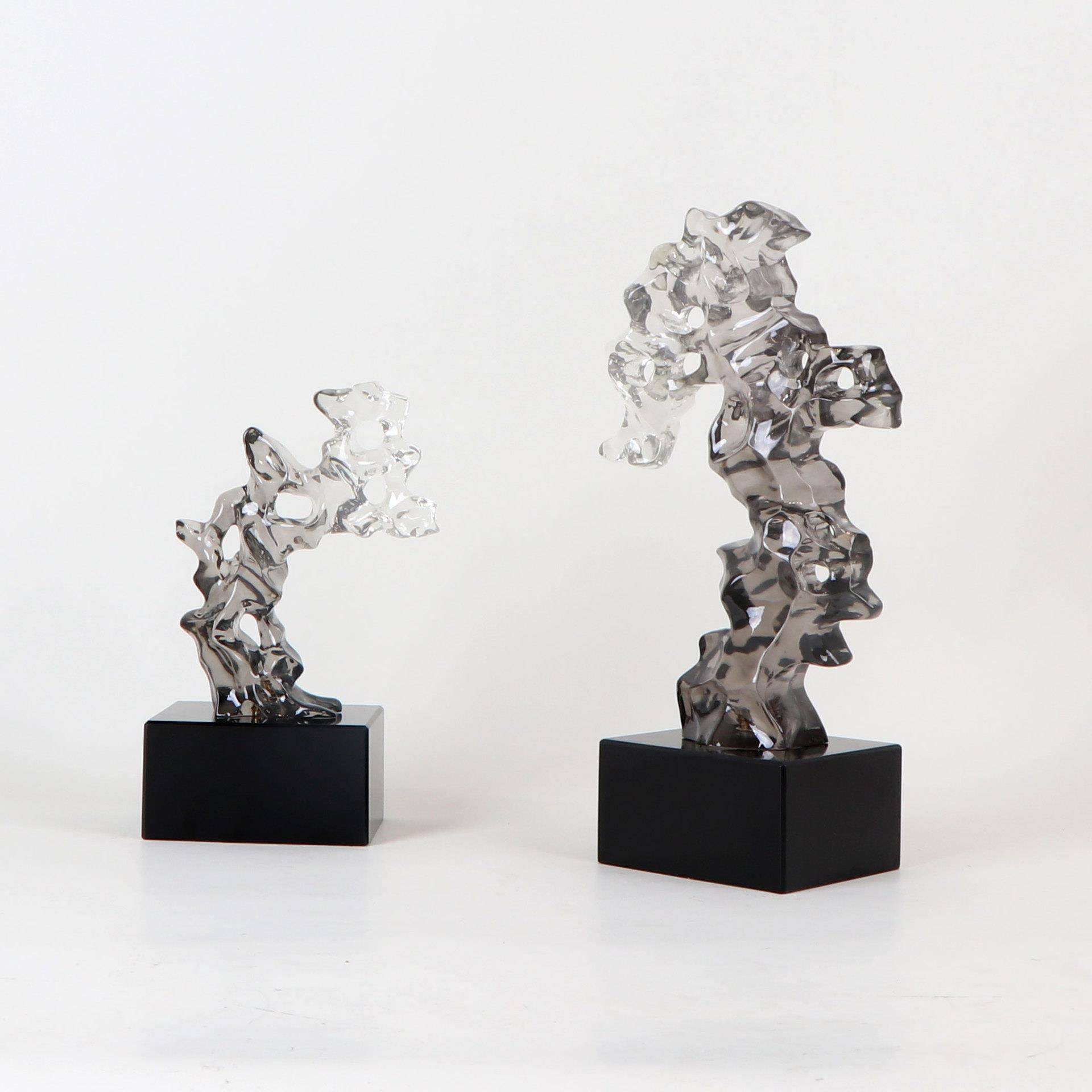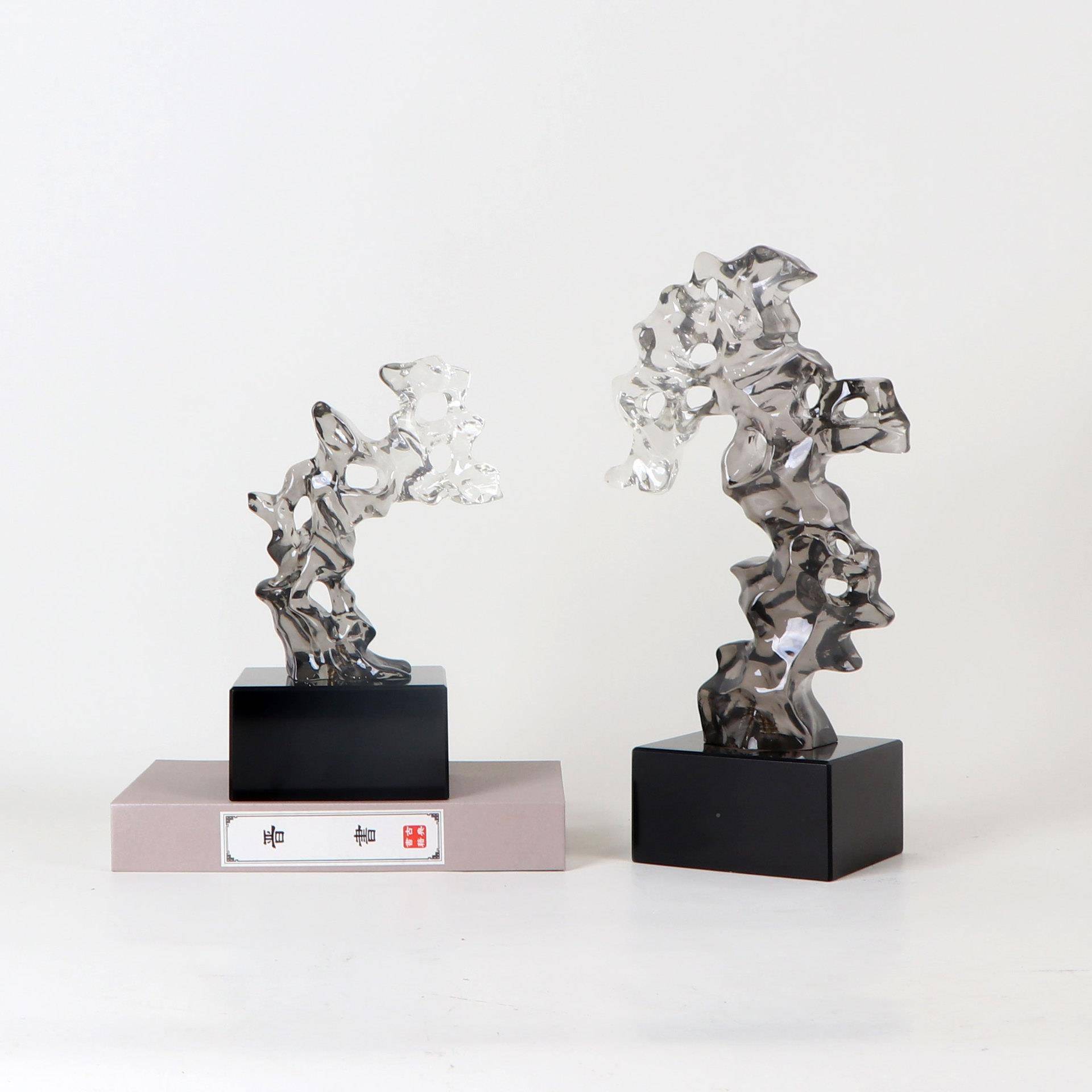 新中式灰石头房珊瑚色太湖石摆件样板间书博古架几茶书柜MC-TY-60