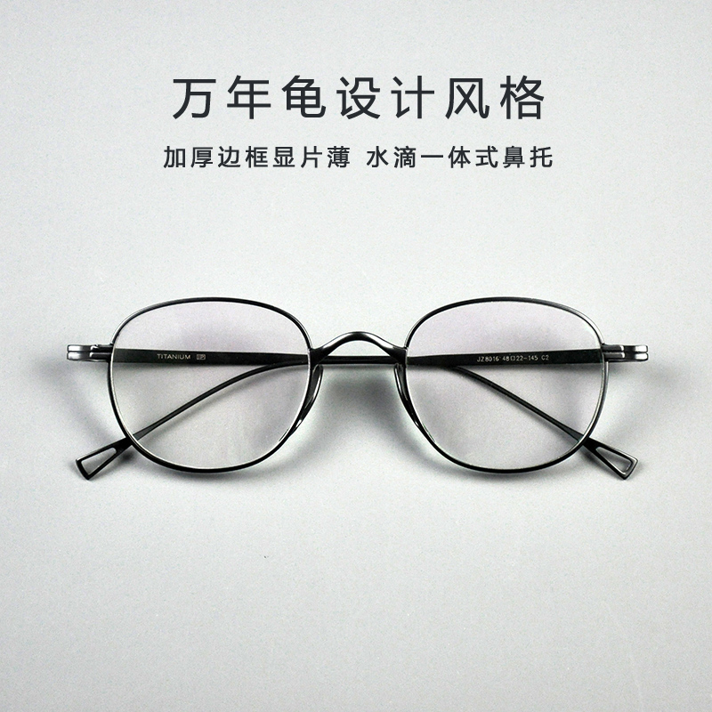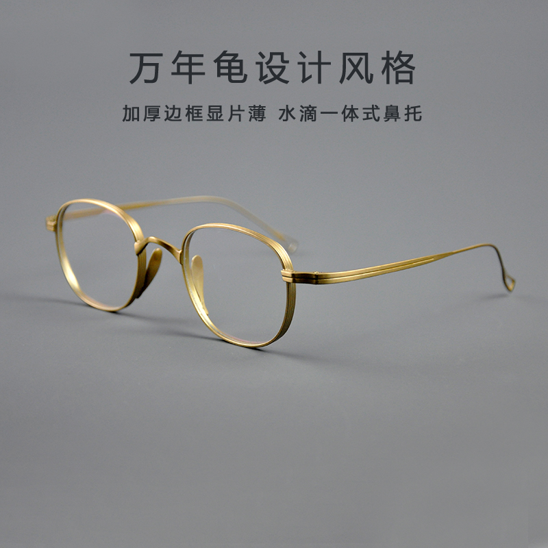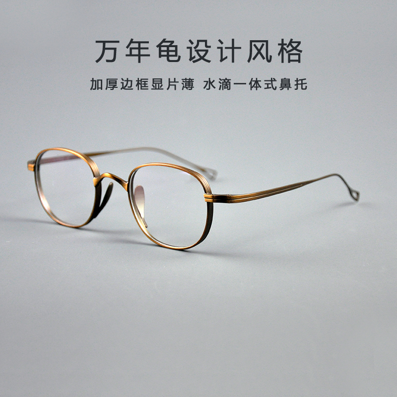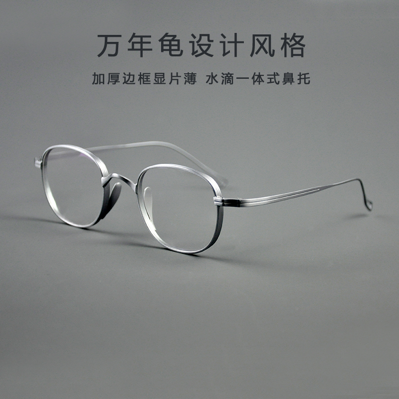 万年龟设计风格复古方框眼镜架纯钛厚边配高度近视水滴鼻托眼镜框
