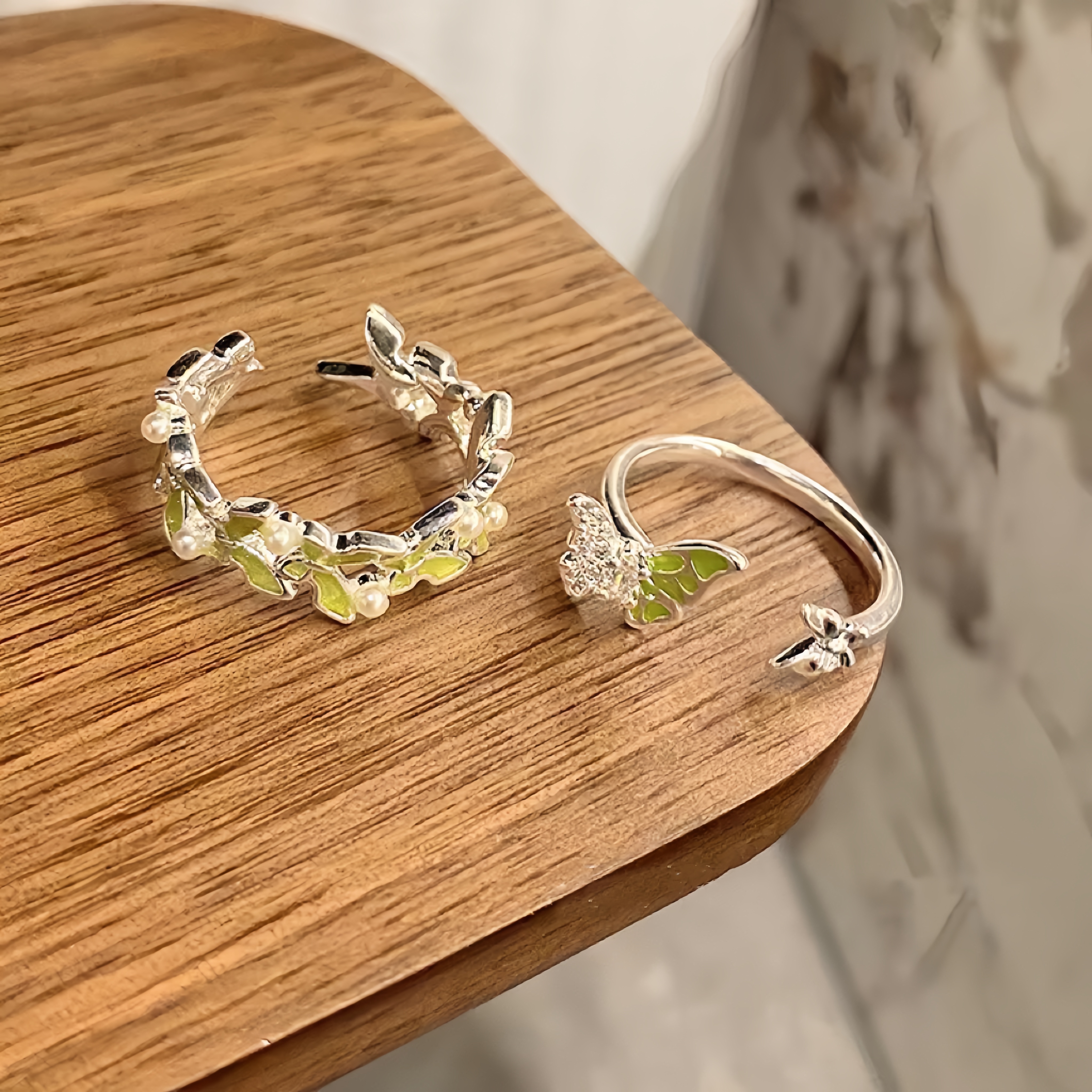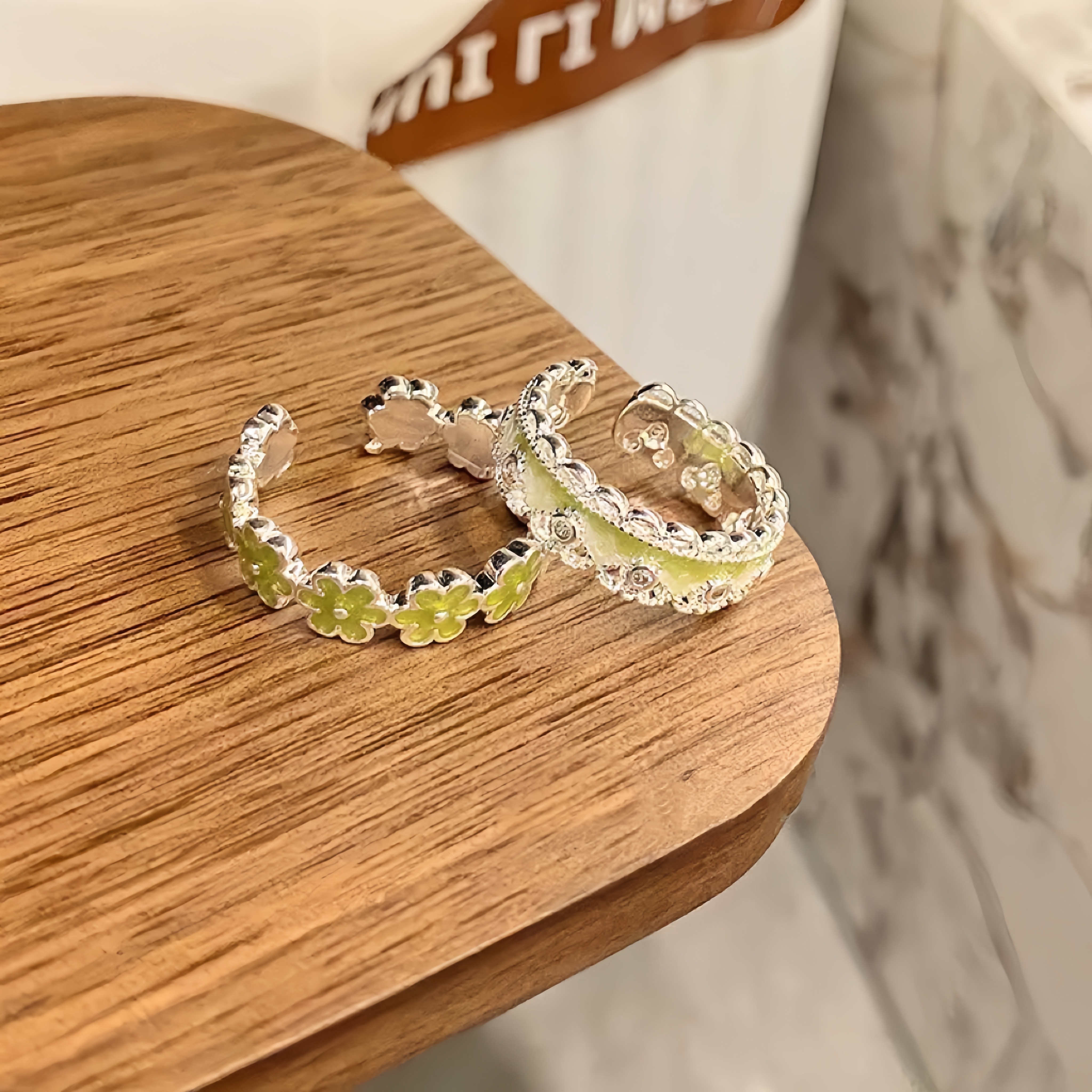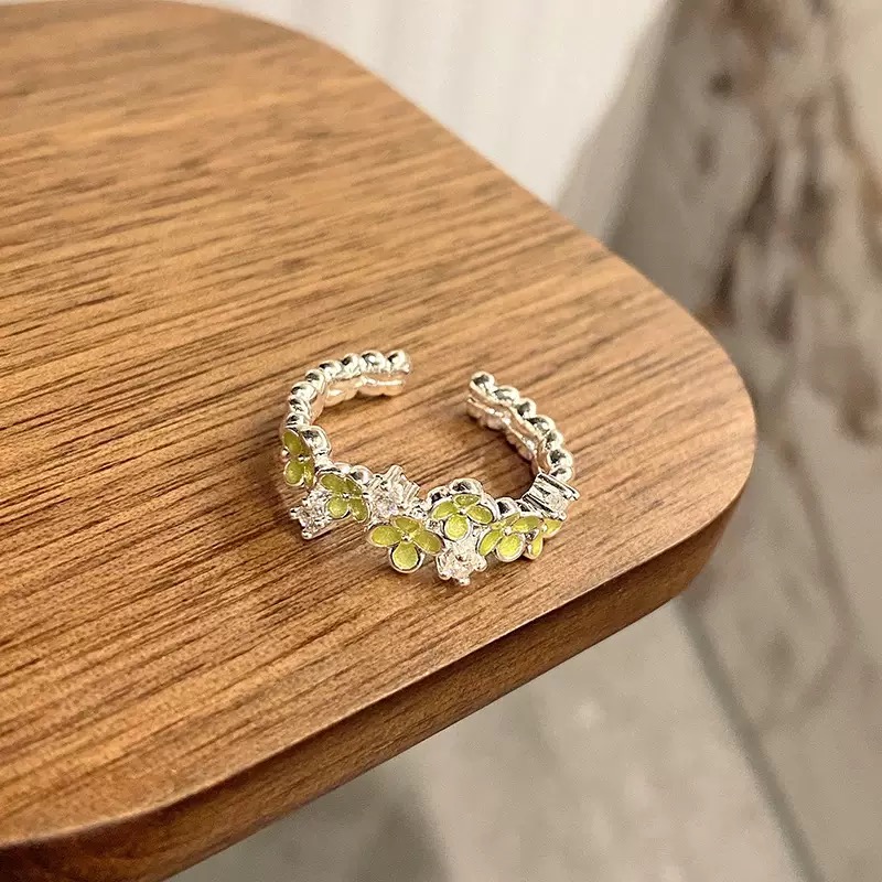 EmoPluto「玉华醒椿」浅绿色小众设计开口戒指叠戴复古原创2025新