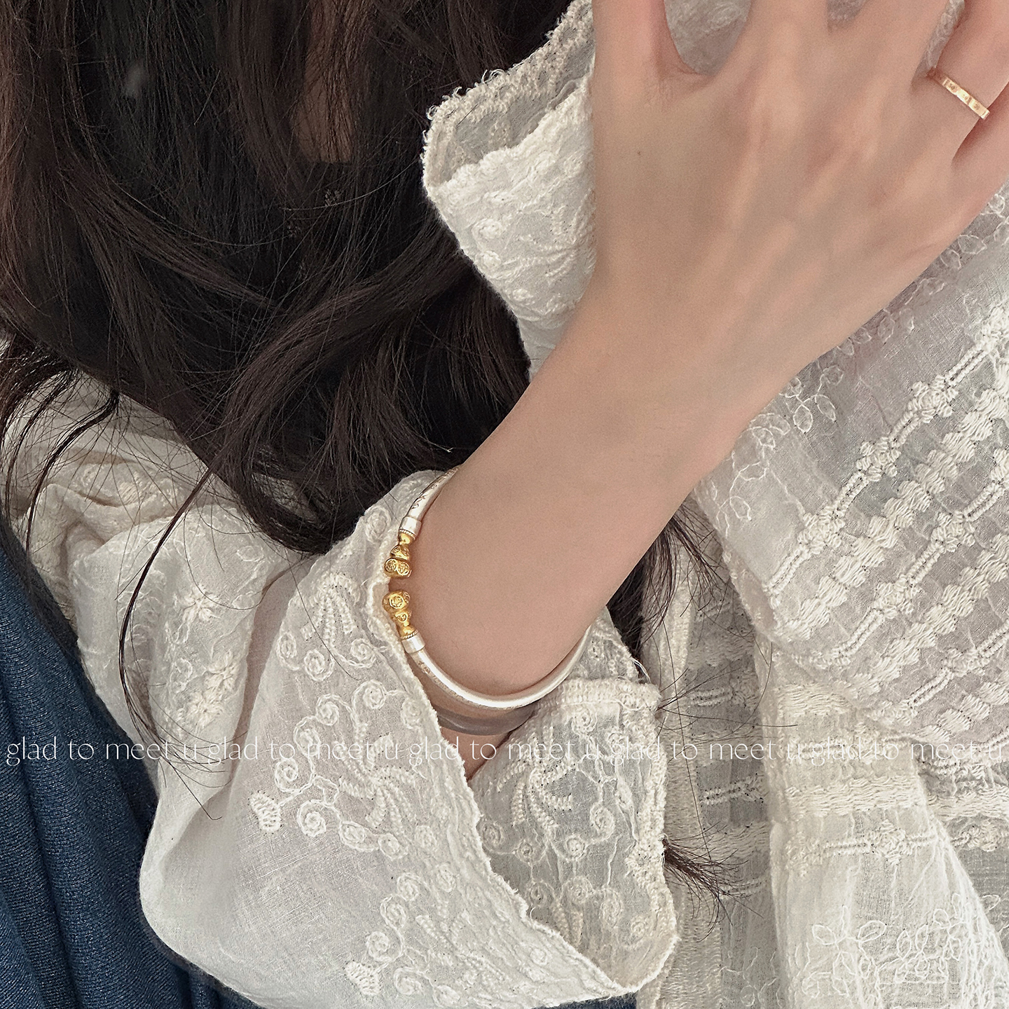 GTMU「福气满满」足银999.9描金葫芦实心手镯女中国风福字银镯子