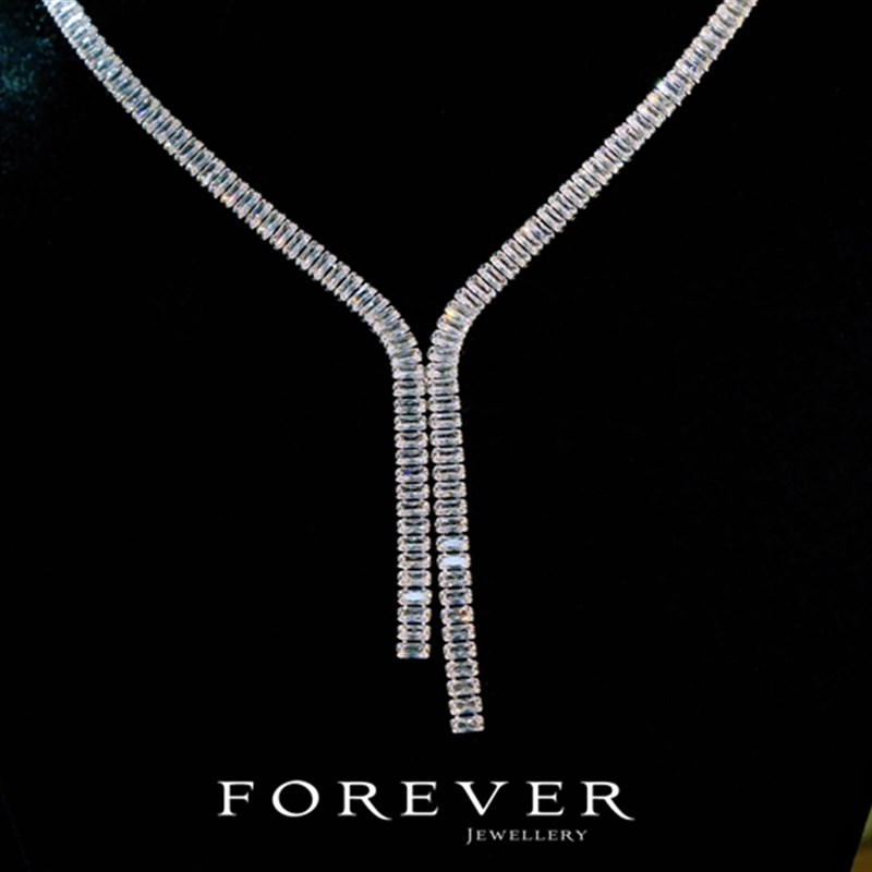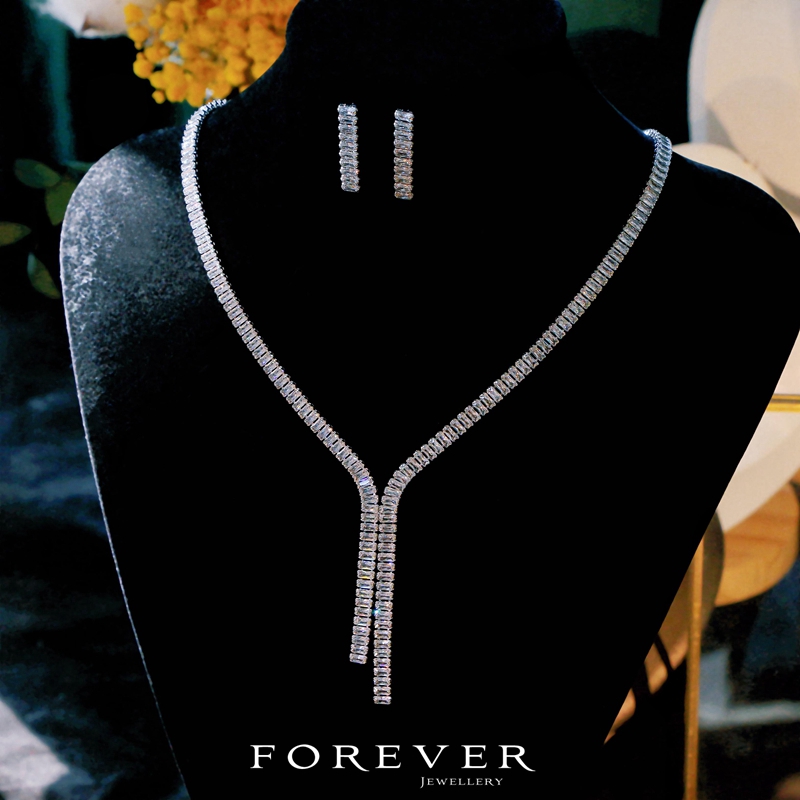 简约气质婚纱锆石项链新娘结婚A礼服配饰锁骨链耳环两件套装显瘦