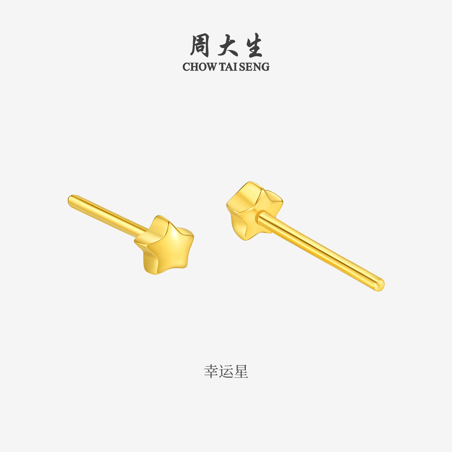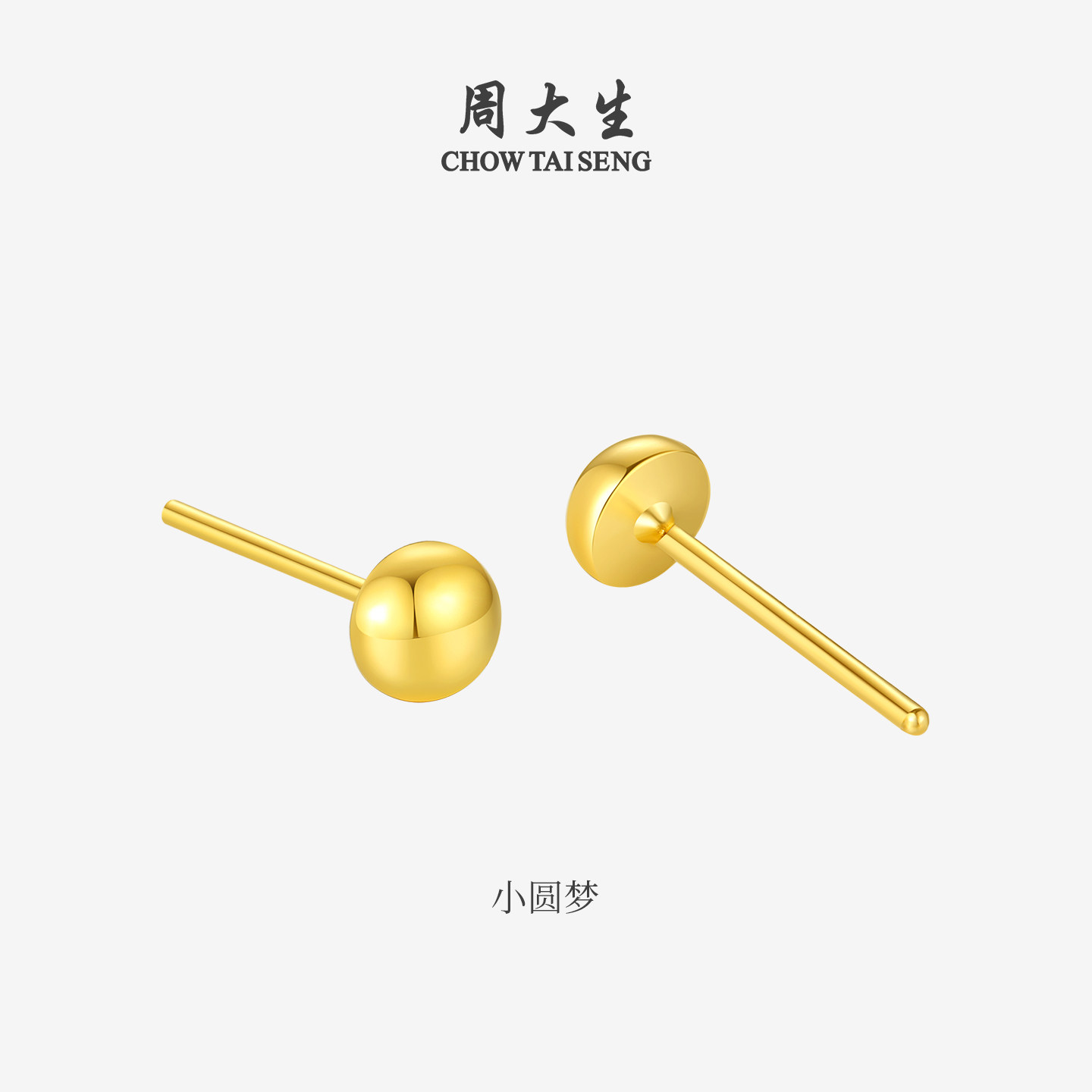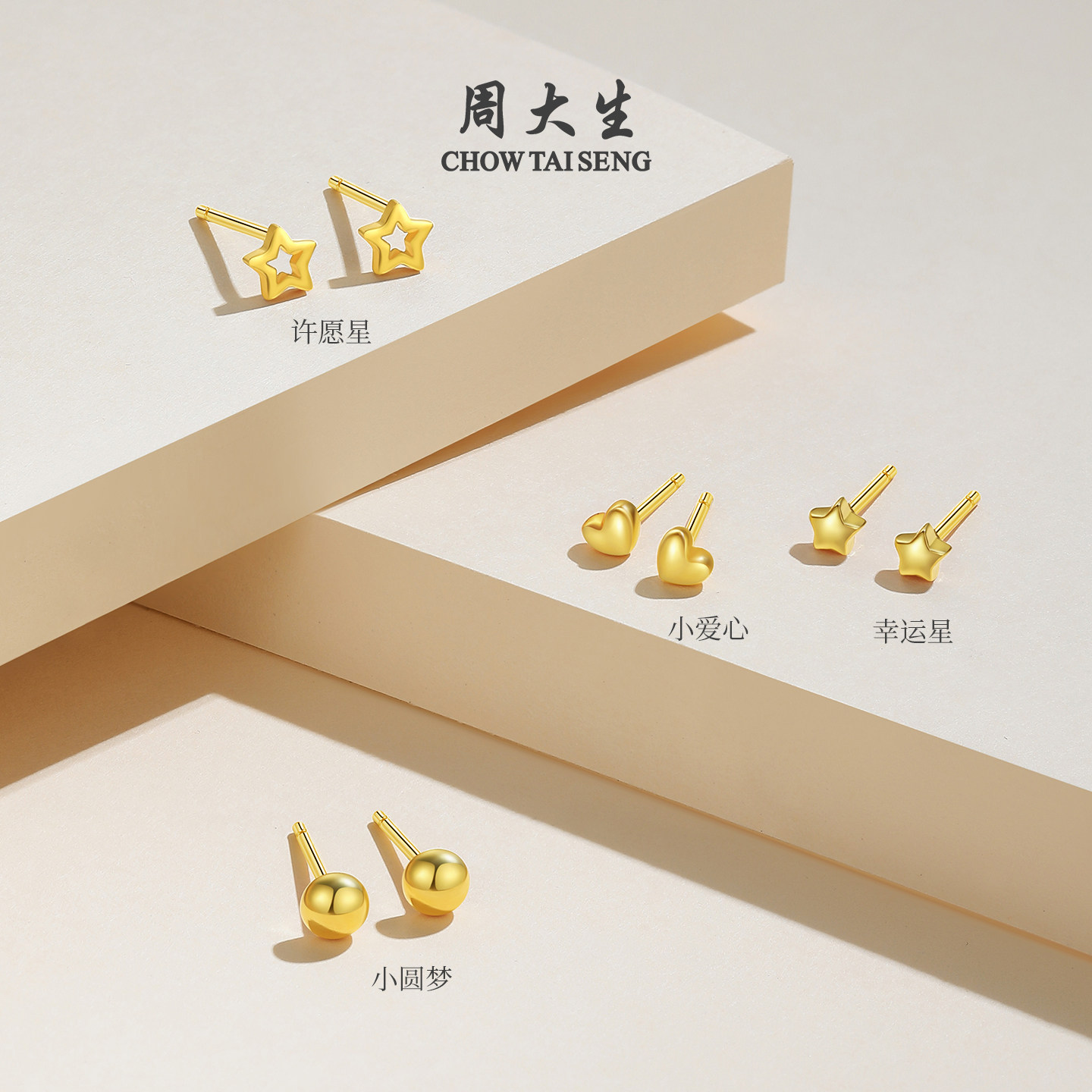 周大生黄金豆豆耳钉女爱心星星金珠简约足金耳饰养耳洞送女友礼物