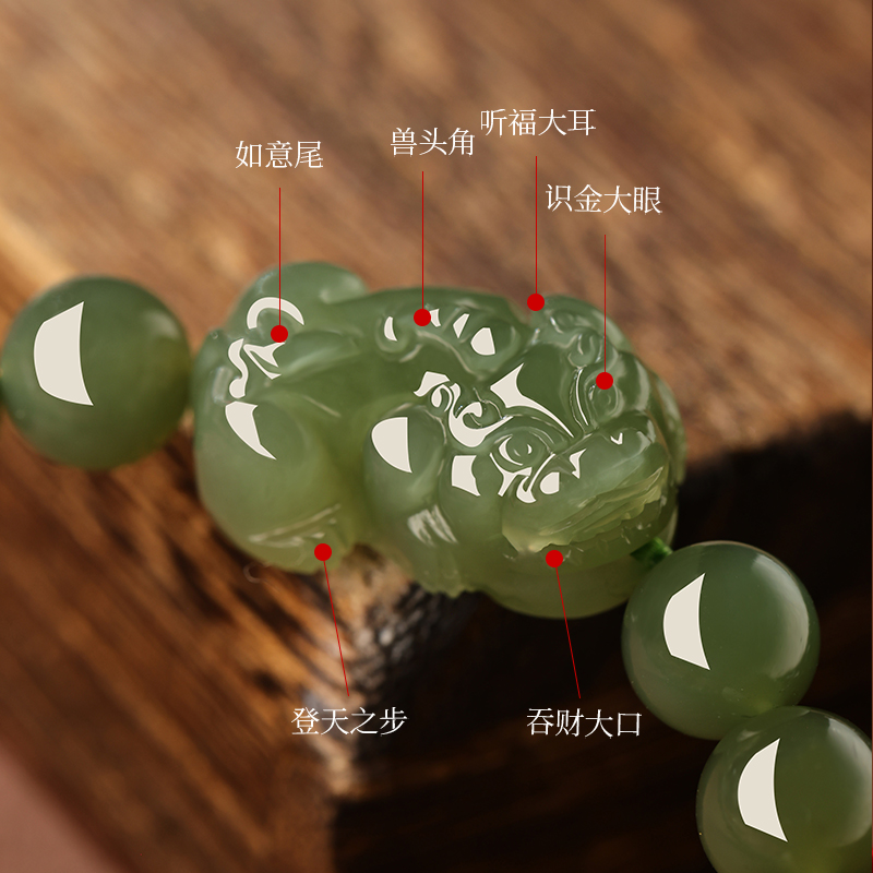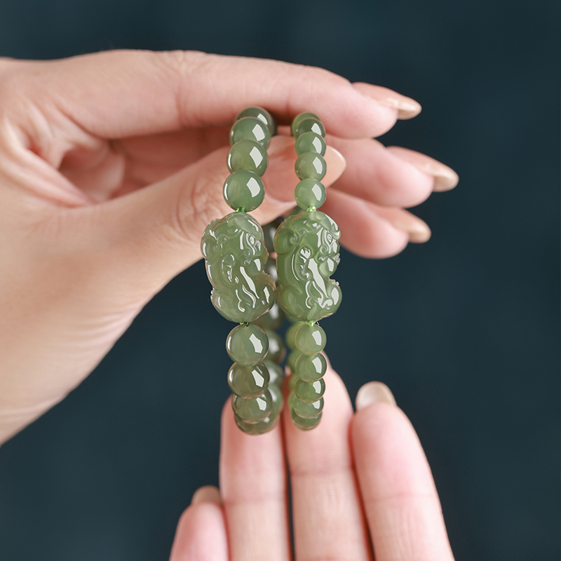 和田玉小霸王貔貅手链青玉圆珠手串女男碧玉转运招财玉石皮丘财源