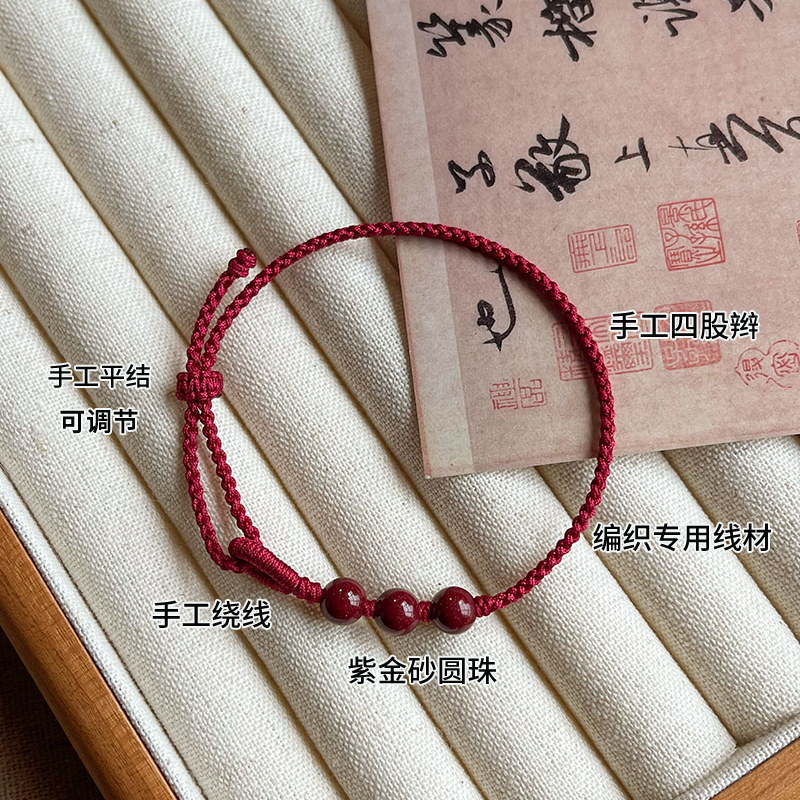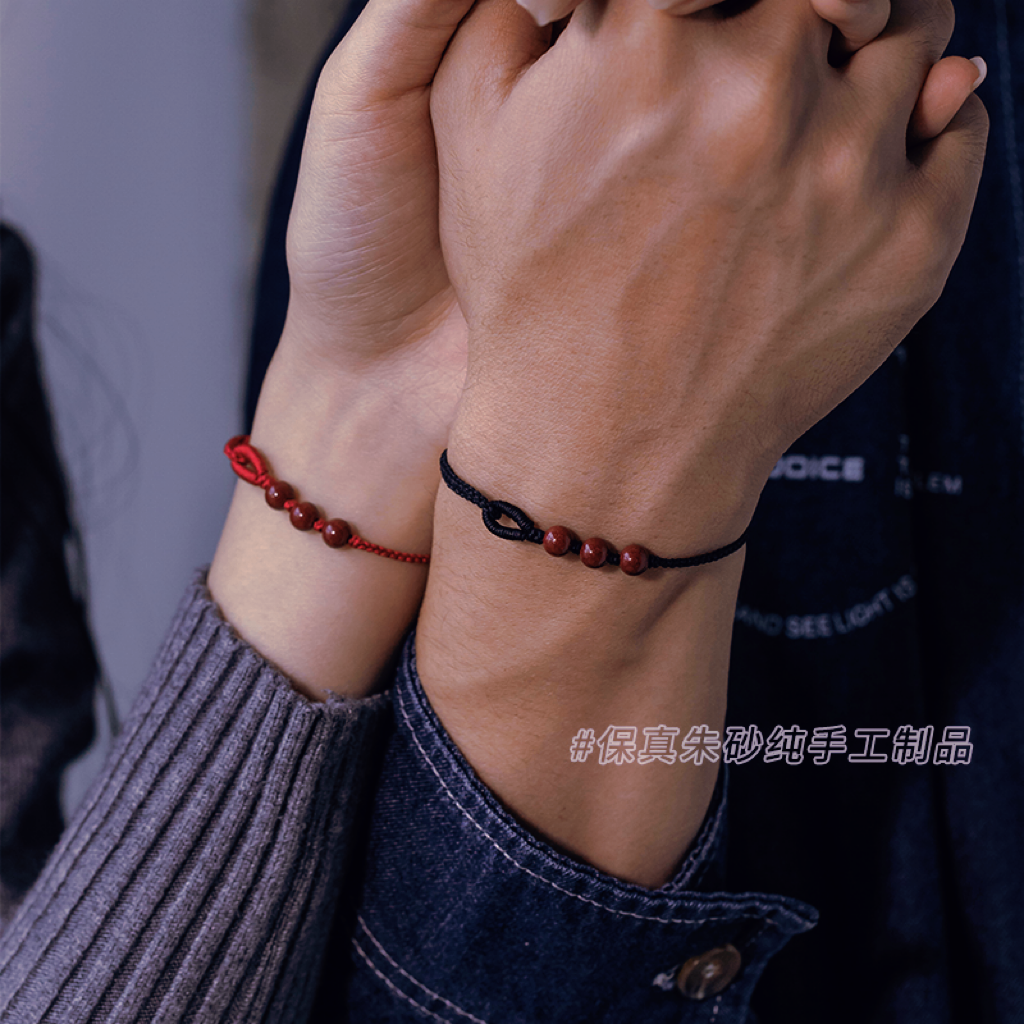 朱砂手链转运珠手串本命年红绳手工编织手绳黑色高级男女情侣礼物