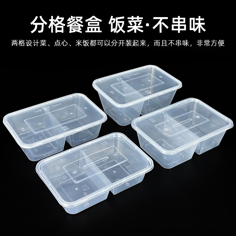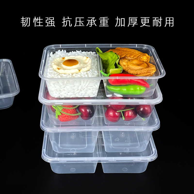 长方形分格餐盒一次性塑料透明加厚两格打包盒快餐外卖四格饭盒