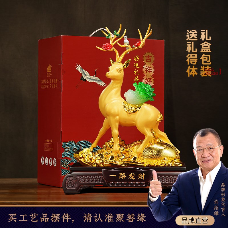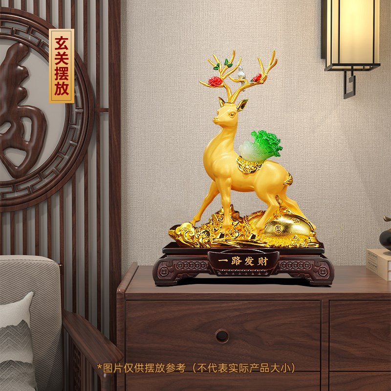 一路发财招财梅i花鹿摆件白菜客厅玄关酒柜装饰工艺品新家乔迁礼