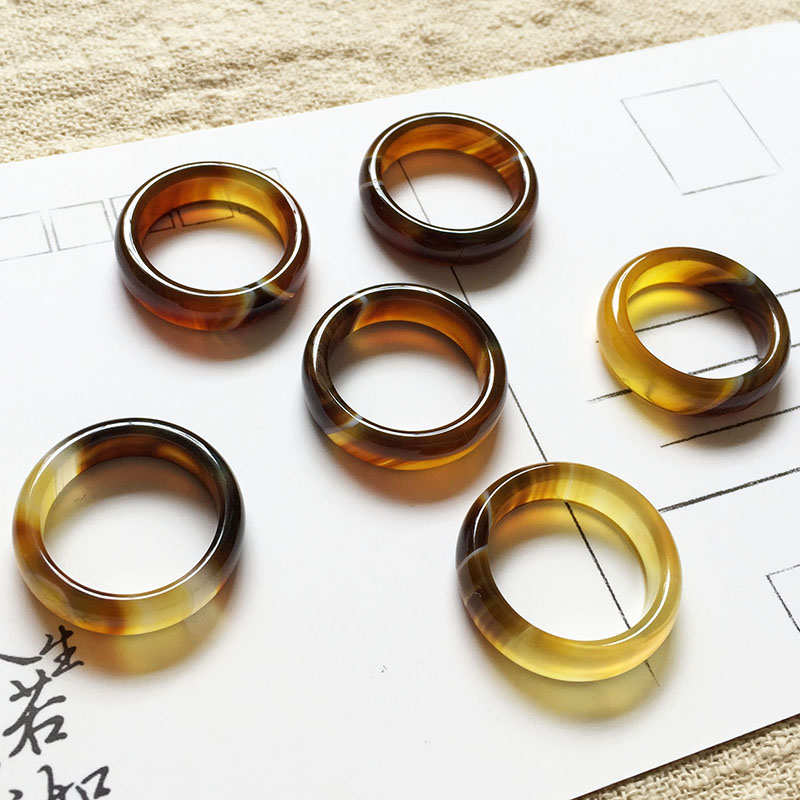 复古天然咖啡色玛瑙戒指 极细款褐色玉髓尾戒男女款小众设计指环