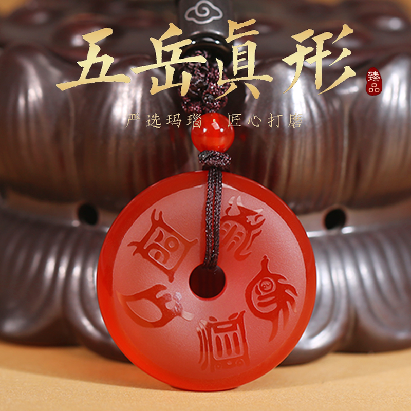 五行属火吊坠五岳真形图挂件补金木水火土护身符红玛瑙平安钥匙扣
